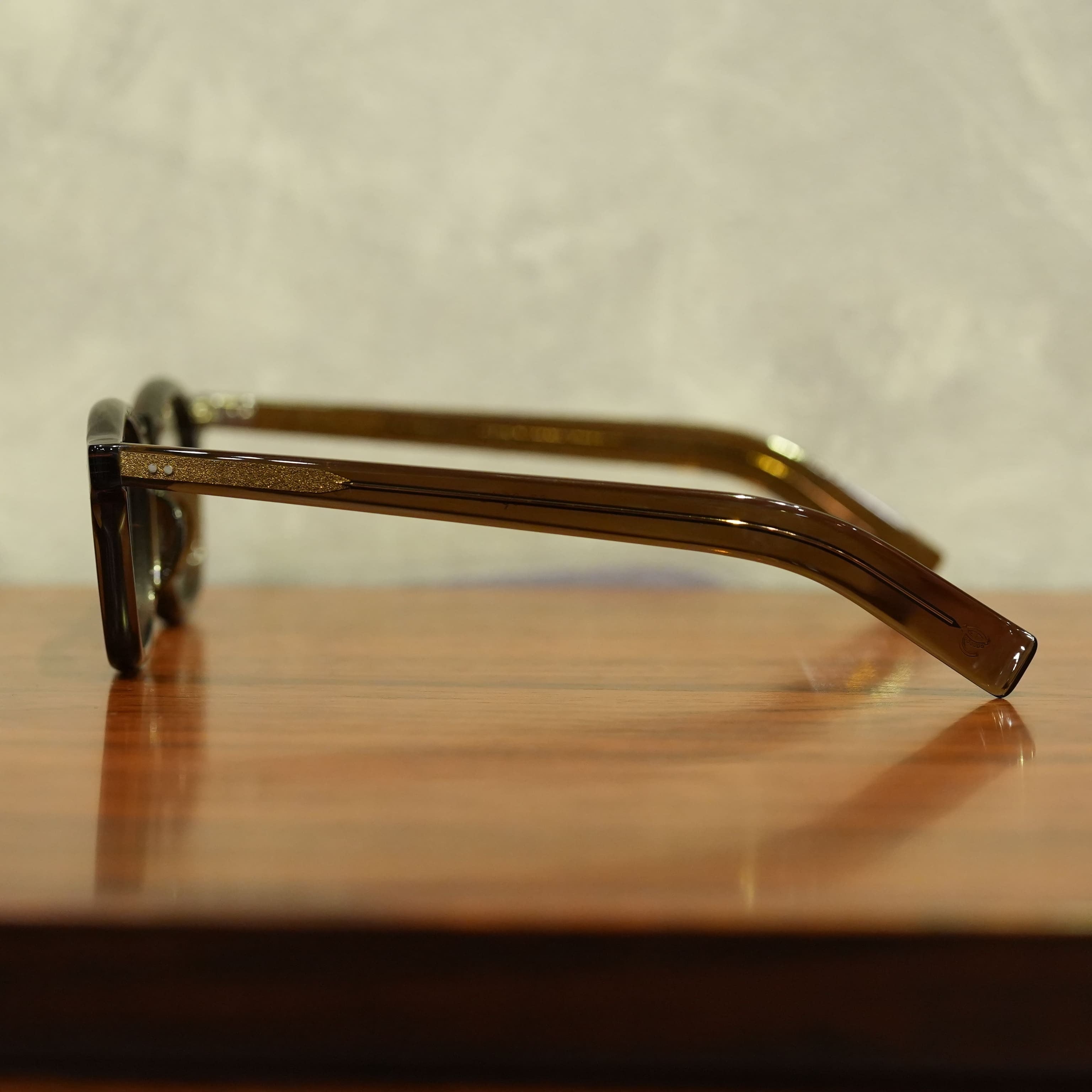 guepard(ギュパール)はモダナイズする箇所がサイズくらいしかないフレンチヴィンテージの高いデザイン性や本質を理解し、敬意を払い表現したコレクション。フレンチヴィンテージは、現代の技術では表現し得ない生地や作り込み、アートピースとも呼べる独創性を持ち、当時のものは非常に希少で同じものを入手するのは困難である。フレームデザインや、油紙、レンズ設計は当時のフレンチヴィンテージのバックグラウンドを忠実に再現している。