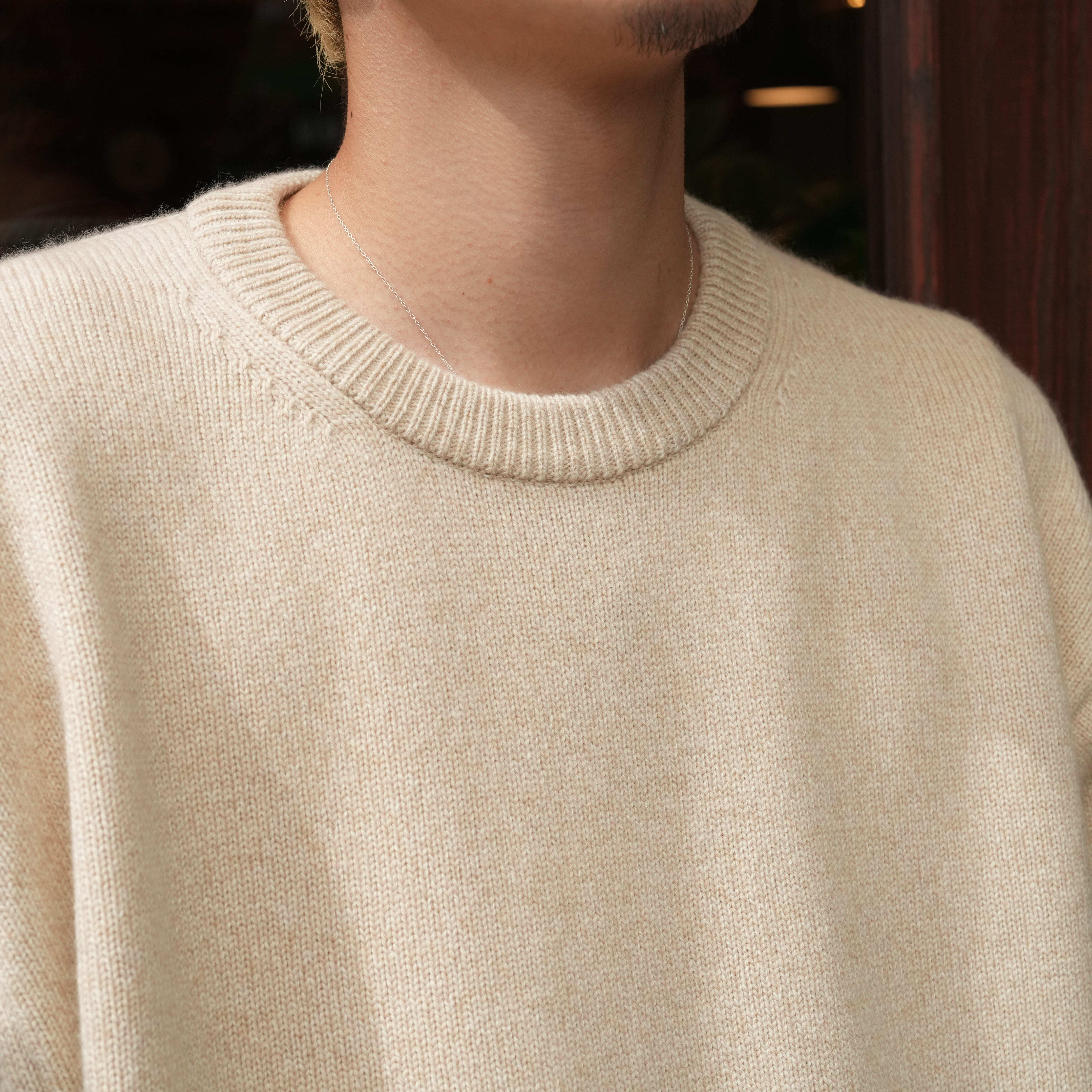 当店でも秋冬イチオシのHERILLのゴールデンキャッシュを使用したクルーネックニットです。