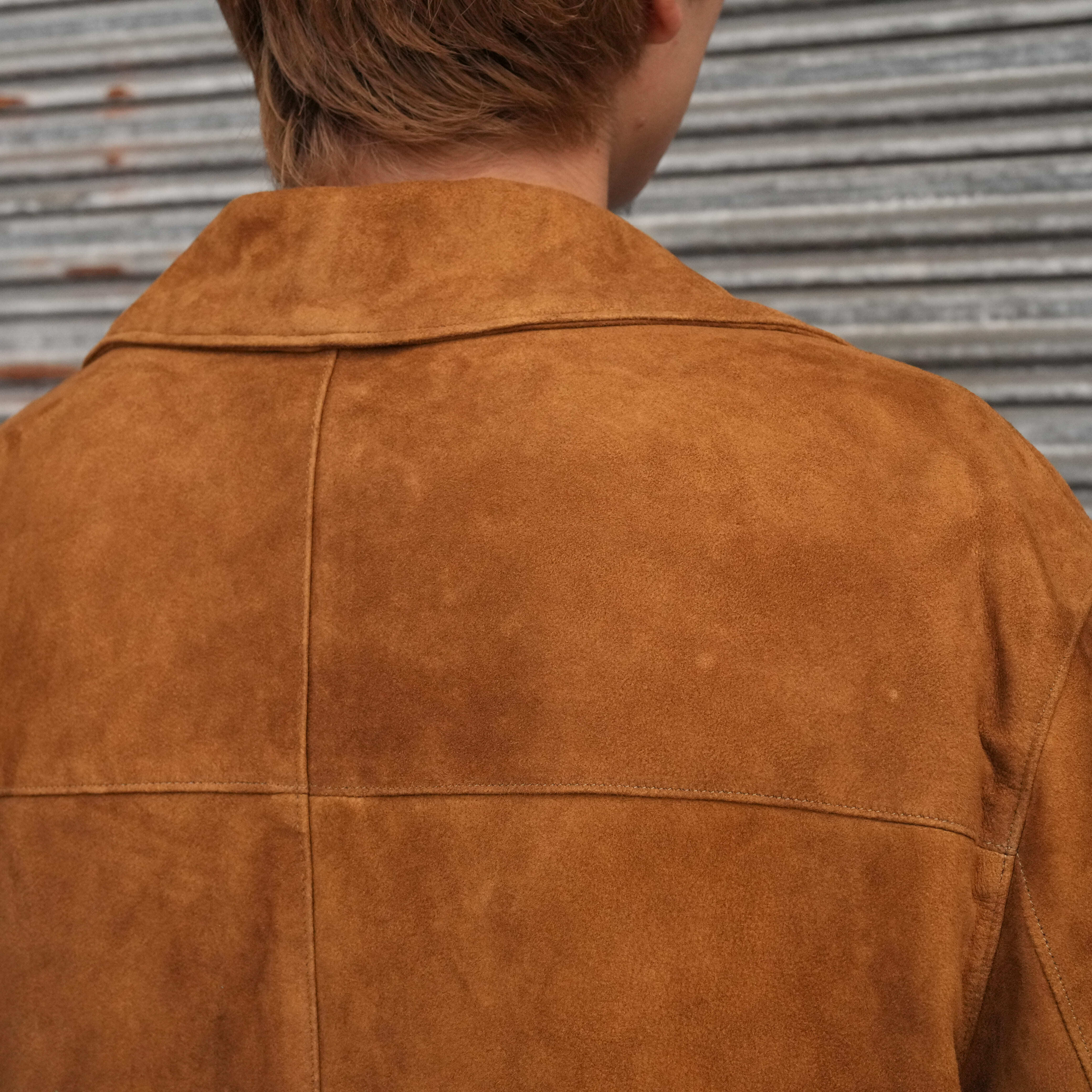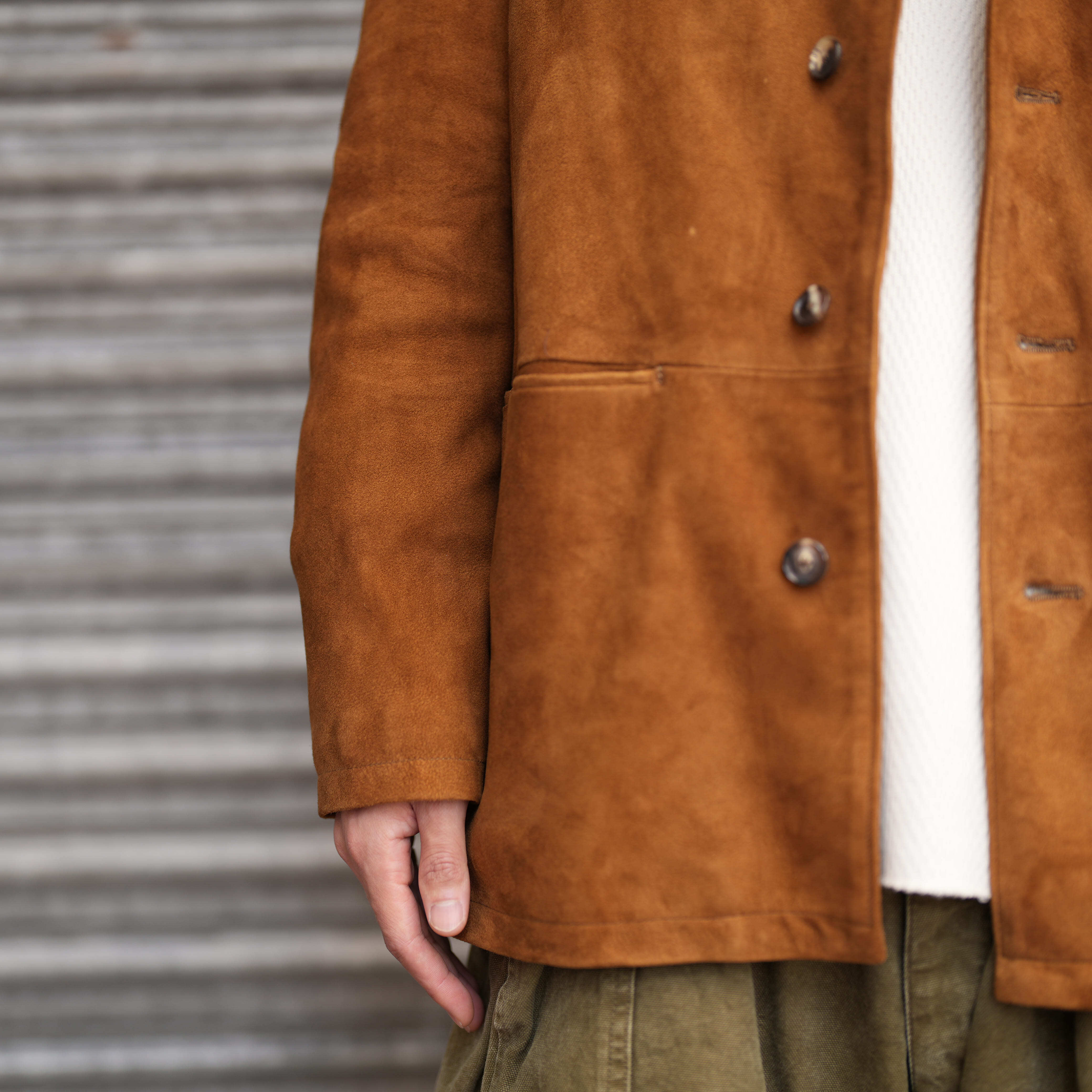 超上質なイタリア製のスウェードを使用した、キャプテンサンシャインのスウェードジャケット。キャプテンらしい極上素材を使用することで柔らかく軽快で非常に着やすく、レザー特有の男らしさの中にどこか品の良さも感じられます。シルエットの良さは言うまでもありません。裏地もシルクと細部まで抜かりがなく、裏がちらっと見えた時も抜群に洒落ています。こんなにカッコいいスウェードのジャケットは中々出会えないかと思います。これも着まくることで更にいい雰囲気になりそうなので非常に楽しみです。