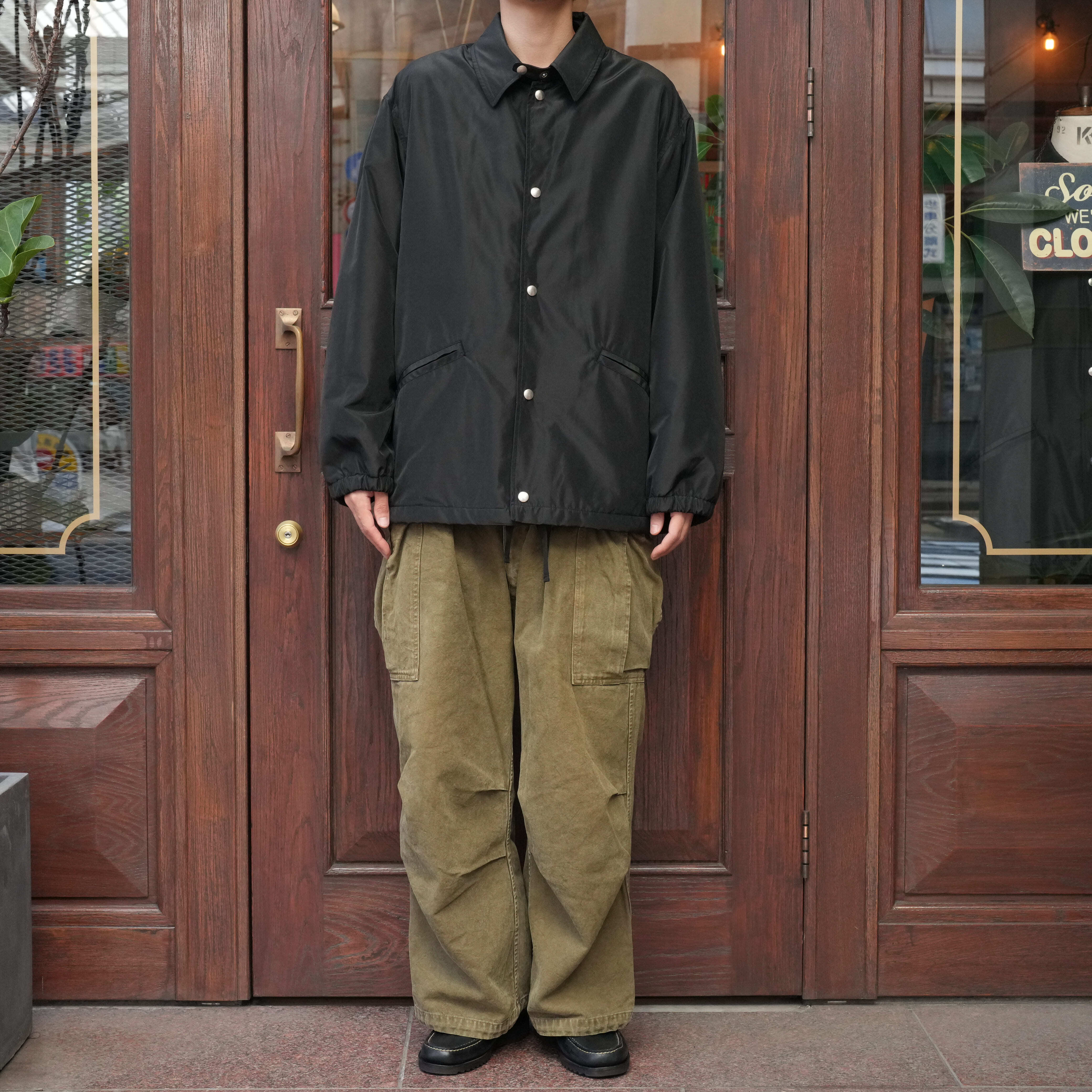 色々書きましたがこのサイズ感とシンプルで使い勝手のいいデザインは、あると普通にめっちゃ着るやつだなと思います。僕のようにワードローブにカバーオールが増えてきた方もコーディネートのバリエーションが増えるのでオススメです。既にお好きな方は勿論、これまでコーチジャケットを着てこなかった方にもお試しいただきたい1着です。
