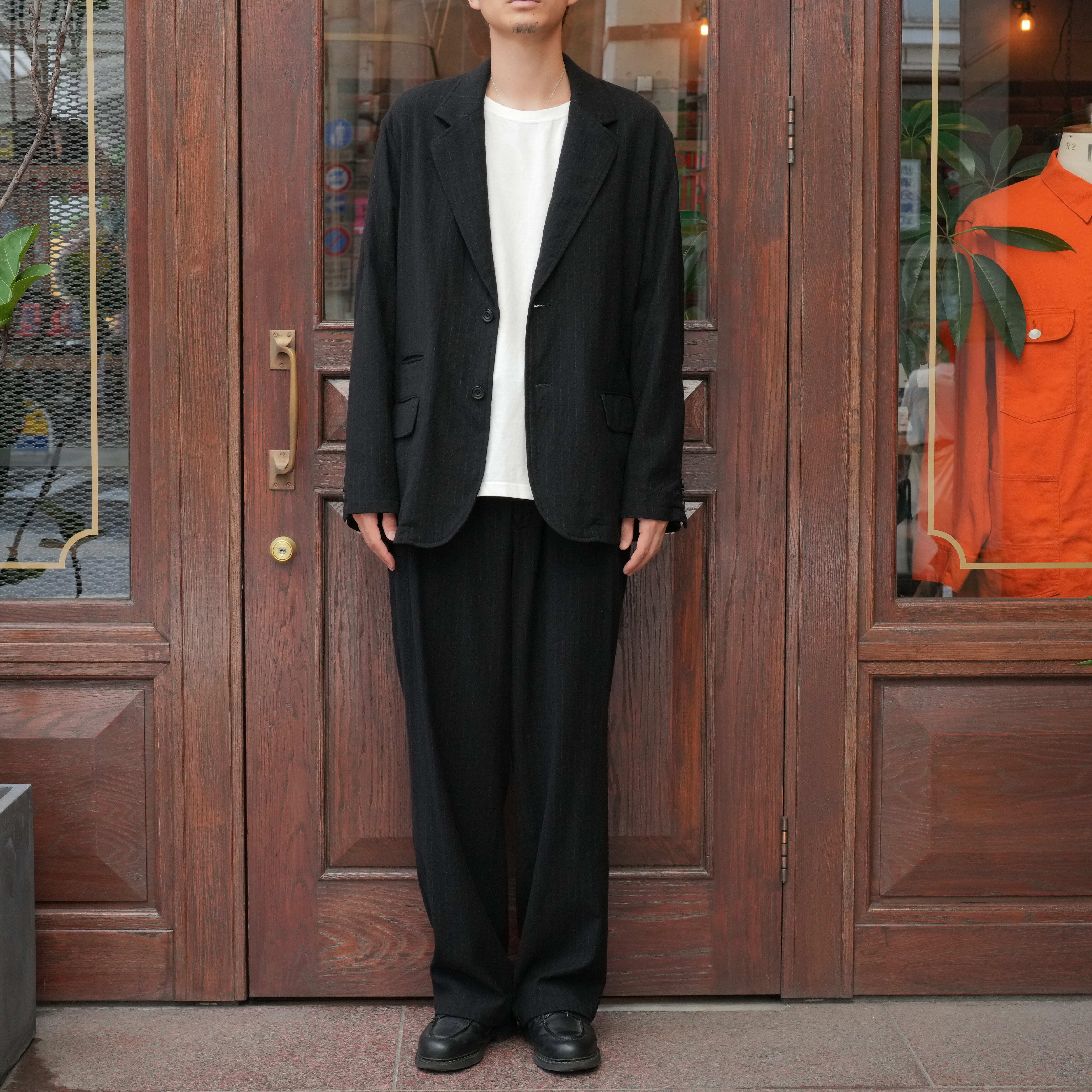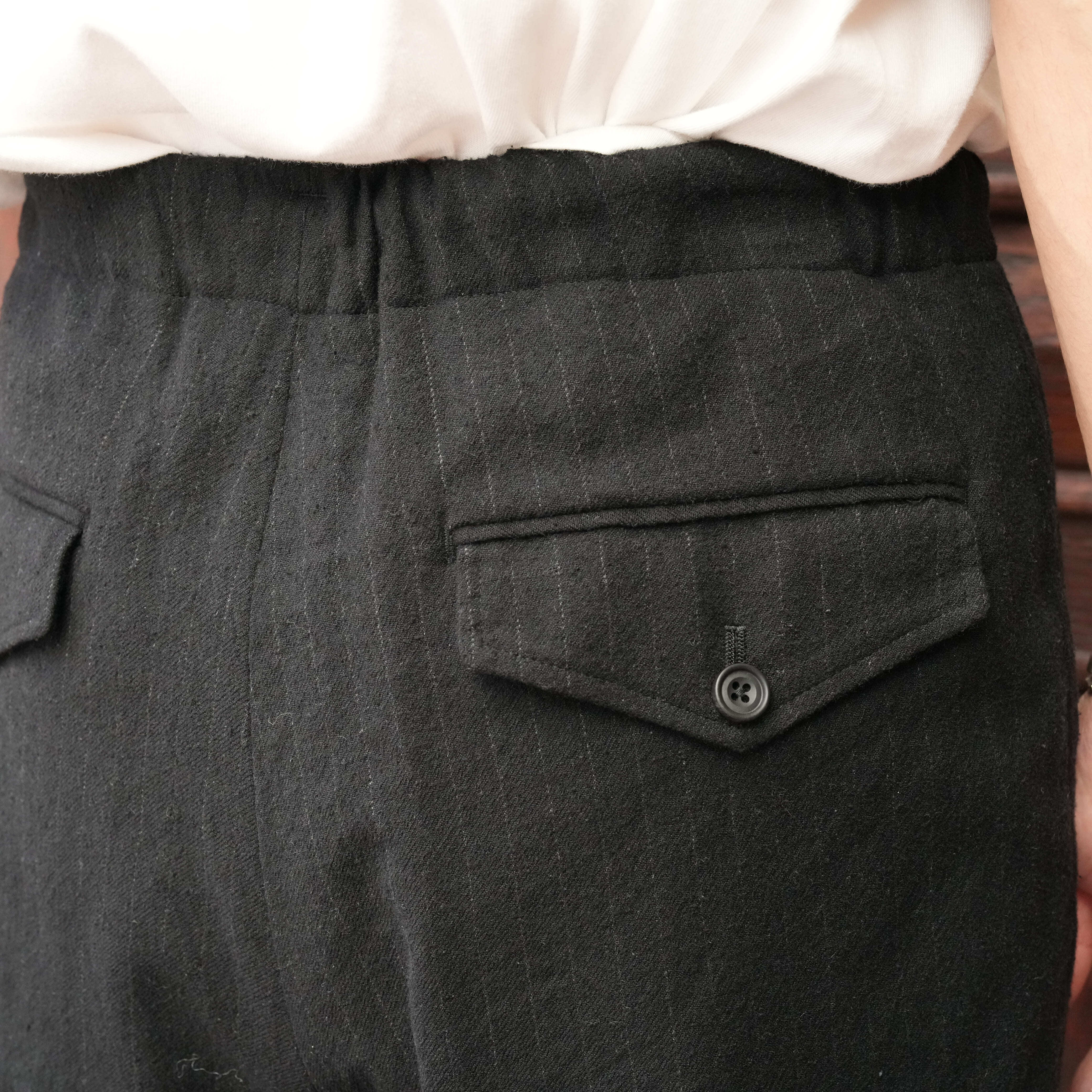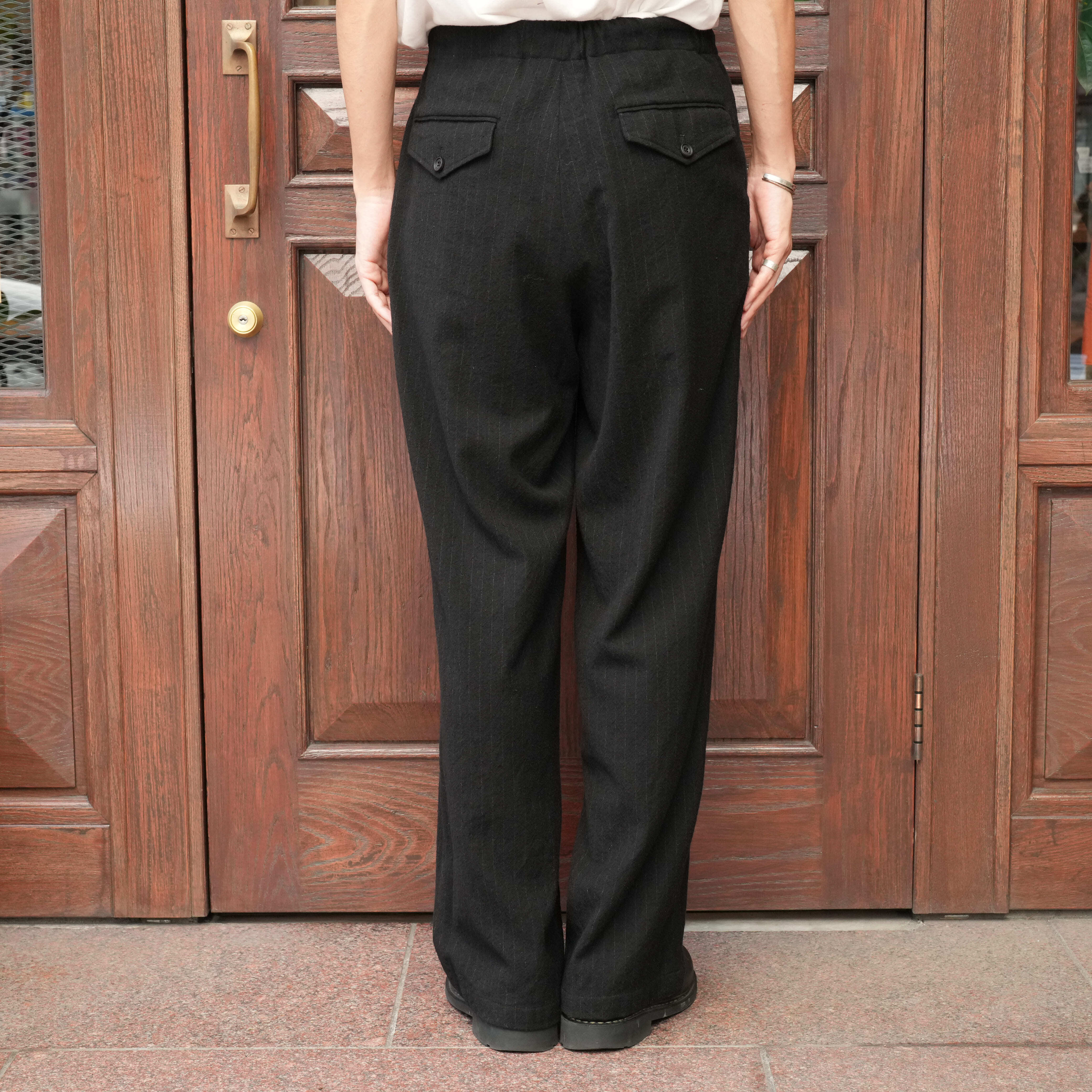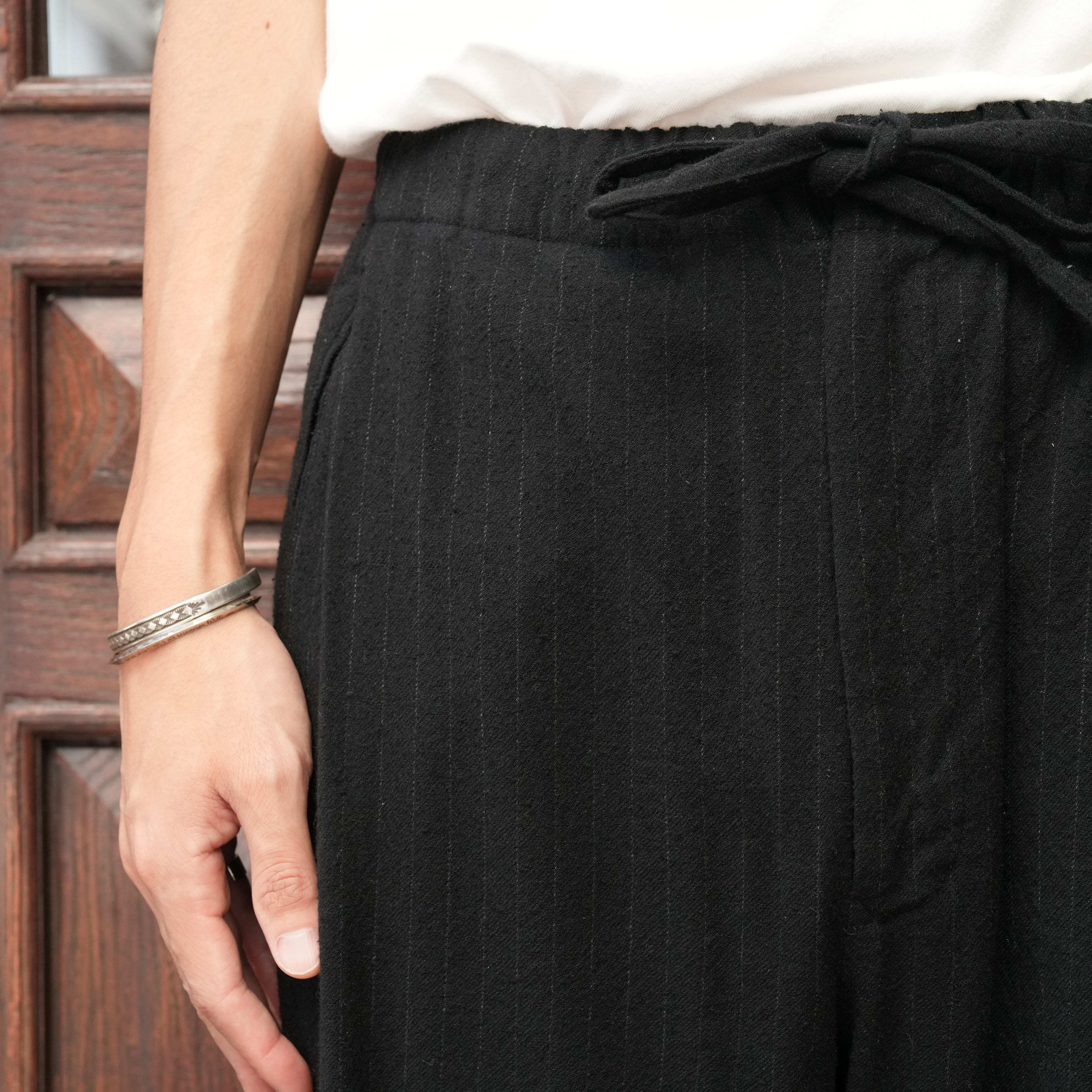 ULTERIOR(アルテリア) 25AW "WASHED WOOL SILK STRIPE DRAWSTRING PANTS" -BLACK-