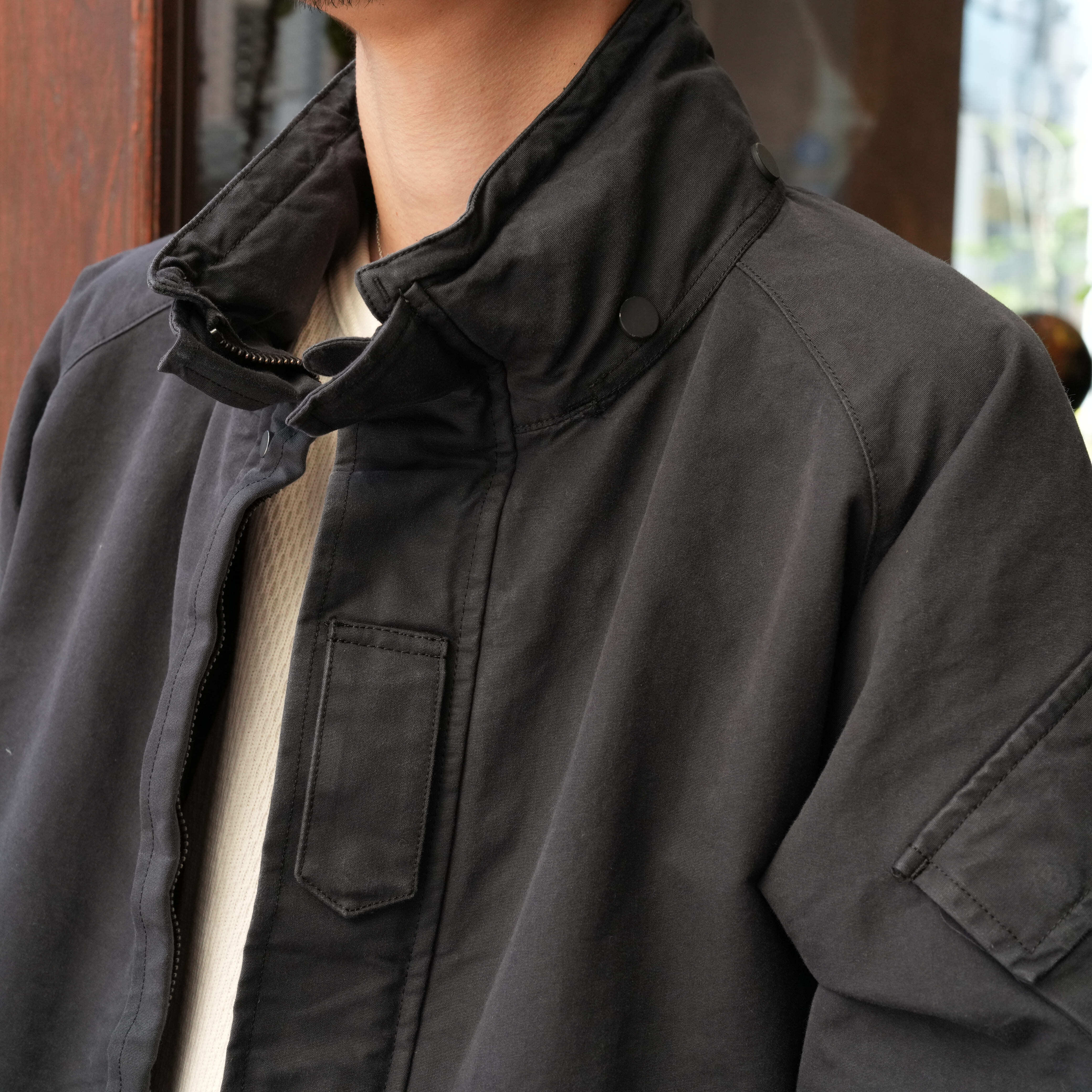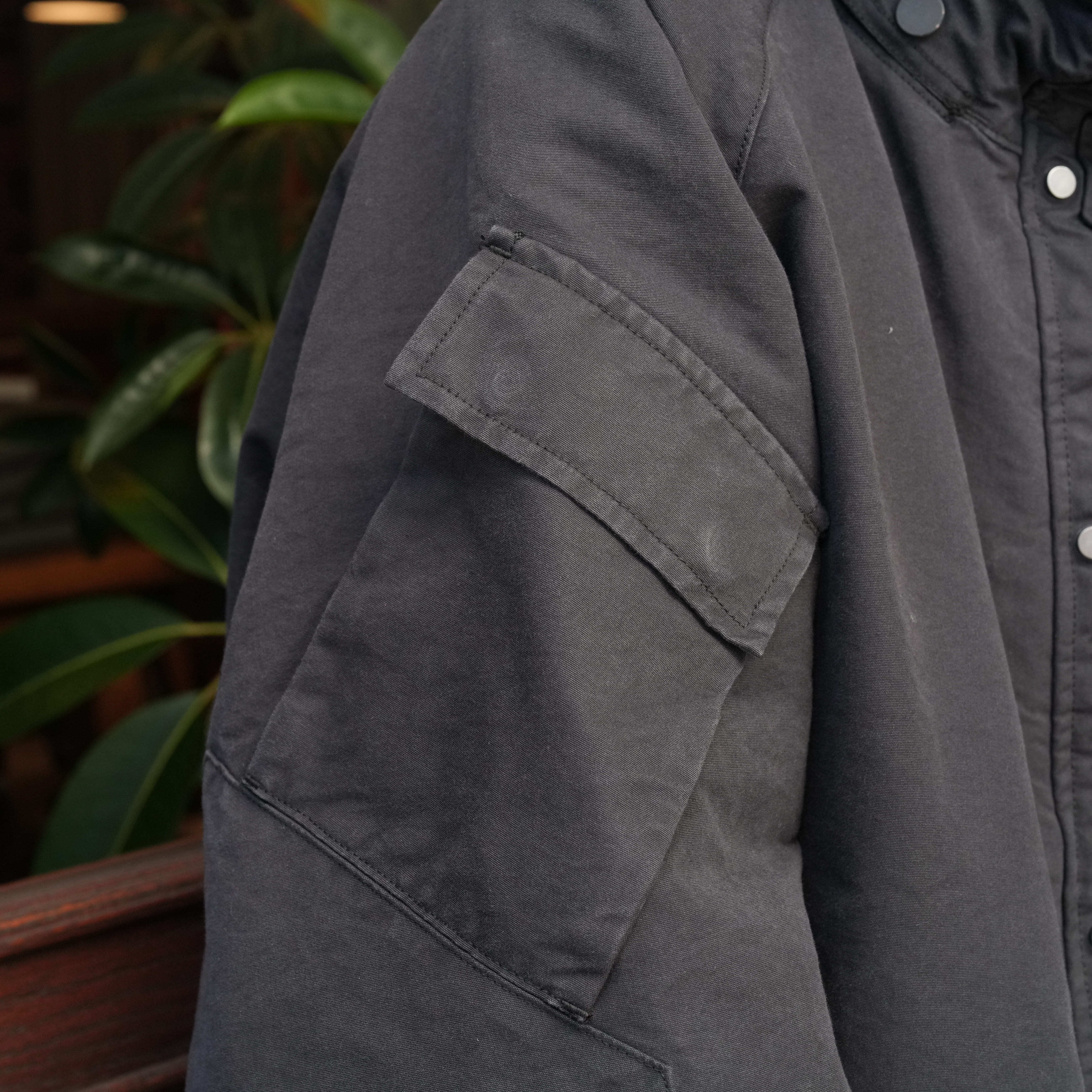 米軍エクワックスのゴアテックスパーカーをデザインベースに縫い上げた後、岡山の加工場 豊和にてユーズド感溢れる洗い加工を施しました。こちらのモデルは特に中綿を入れておらず、ダイワインターテック素材の洗い加工は撥水素材の洗いという矛盾を秘めた加工ではありますが、その出来上がった雰囲気は10年着用してようやく辿り着く様な迫力がある。そして多少パワーは落ちるが加工しても尚しっかり撥水している大和の生地はすごい。