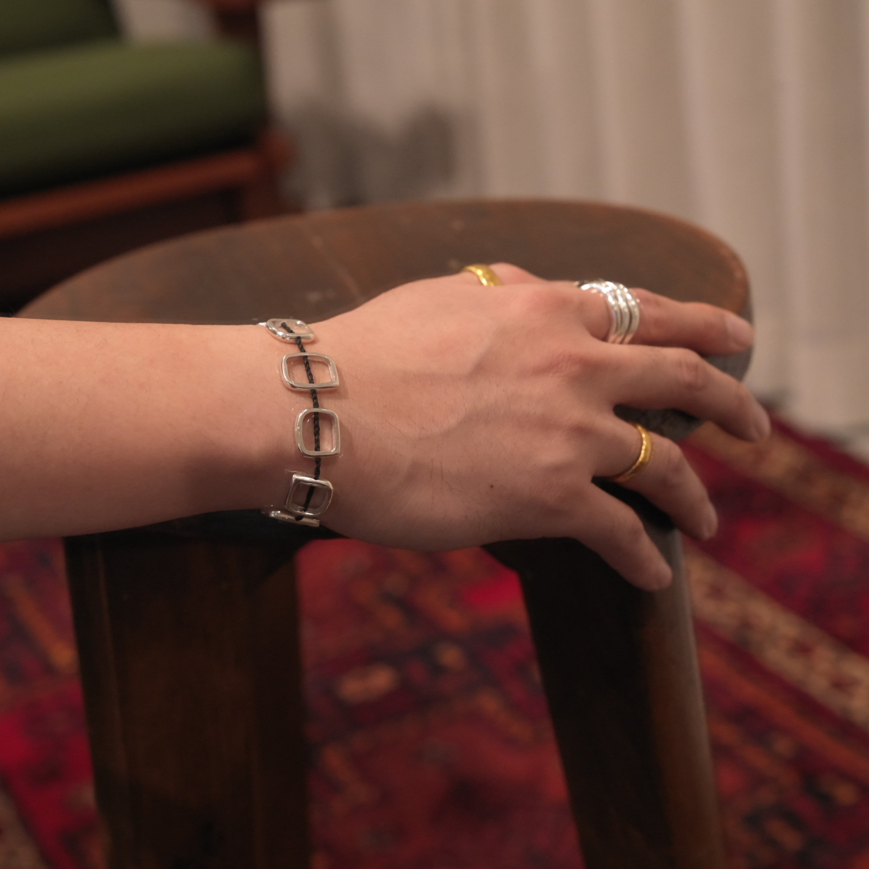 サーファーの彼女がシルバーやゴールドを纏め上げる編み紐の素材として目を付けたのはゴアテックスで知られるゴア社の特殊縫製糸「tenara sewing thread」。