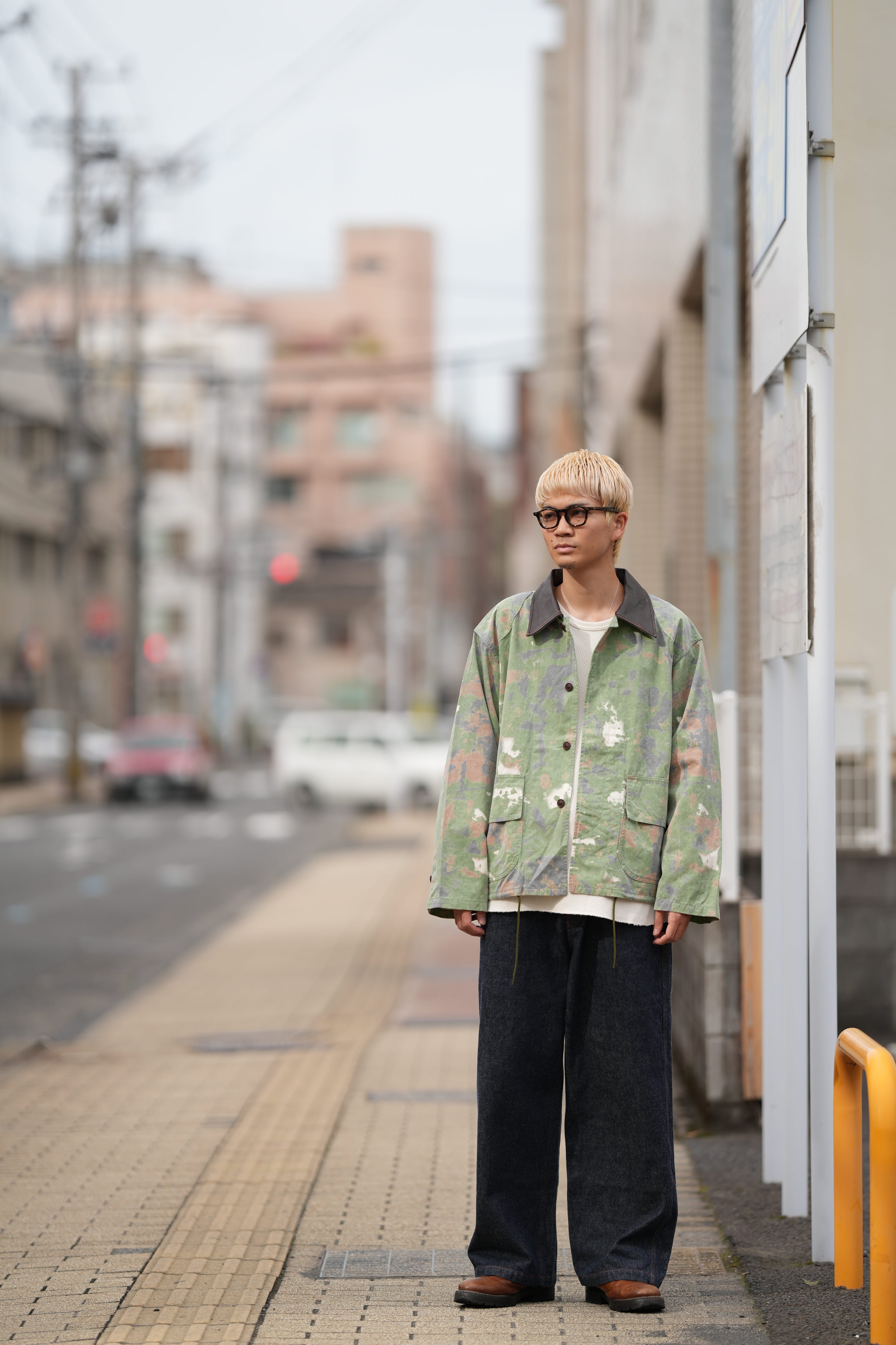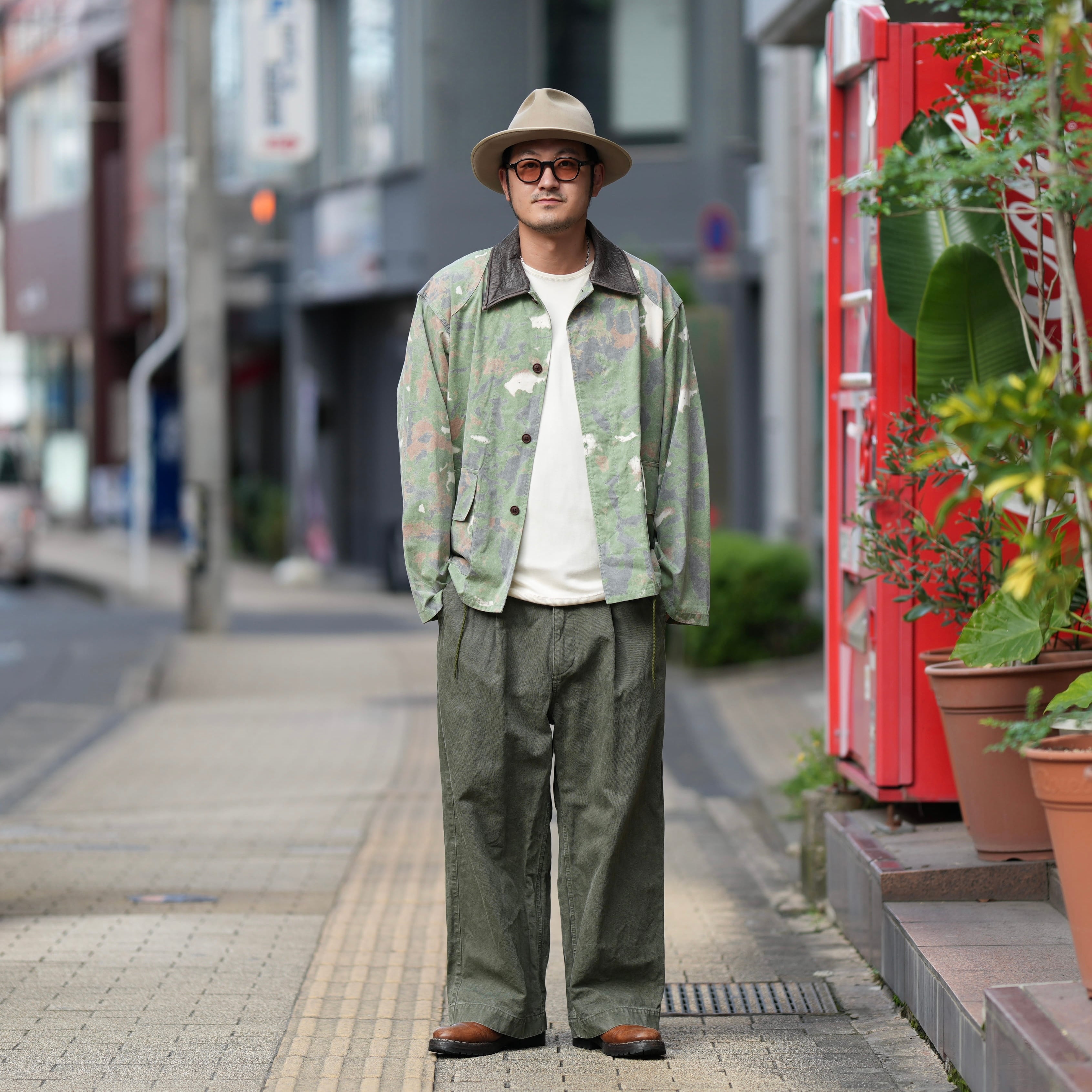 こういったアート性も感じられるようなカモ柄は取り入れやすく、その中でしっかりスタイリングのアクセントになってくれます。シルエットの良さは言うまでもなく、襟のラムレザーもかなりいい雰囲気です。襟がレザーのアイテムを見る機会が増えた気がしますが、やはり間違いないカッコ良さがあります。