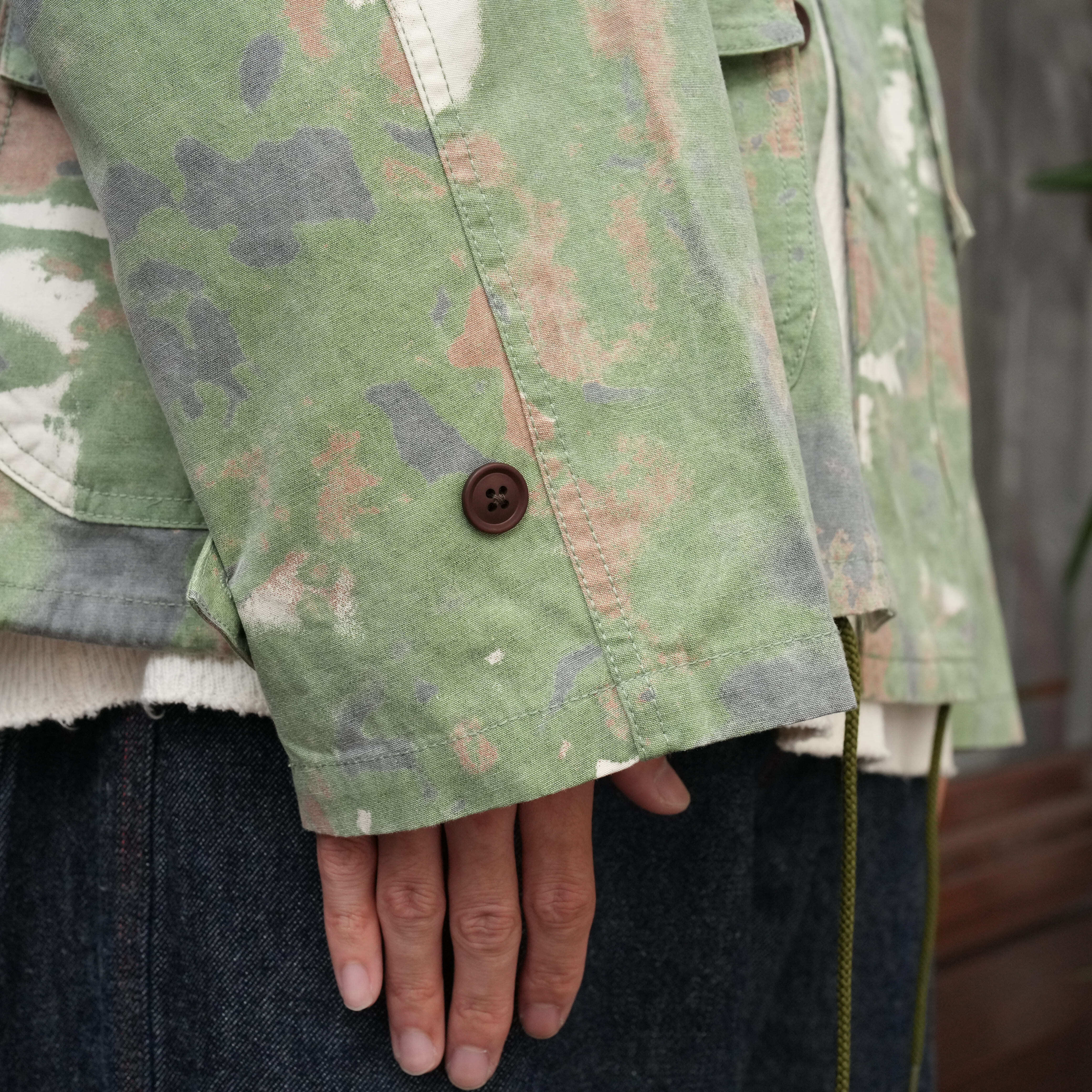 特殊なインクで手捺染プリント、加工を施し独特の色合いのオリジナルカモフラ。