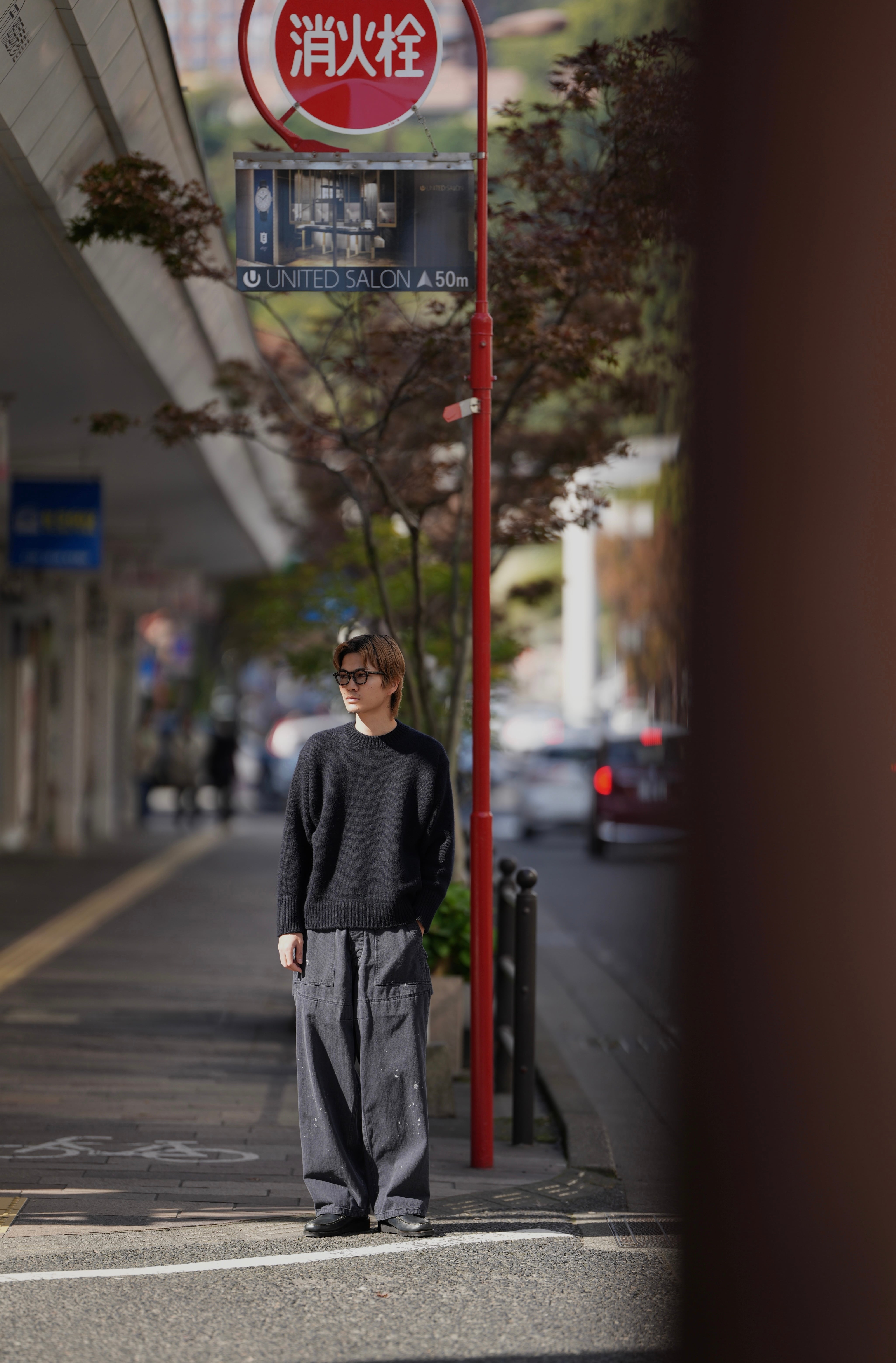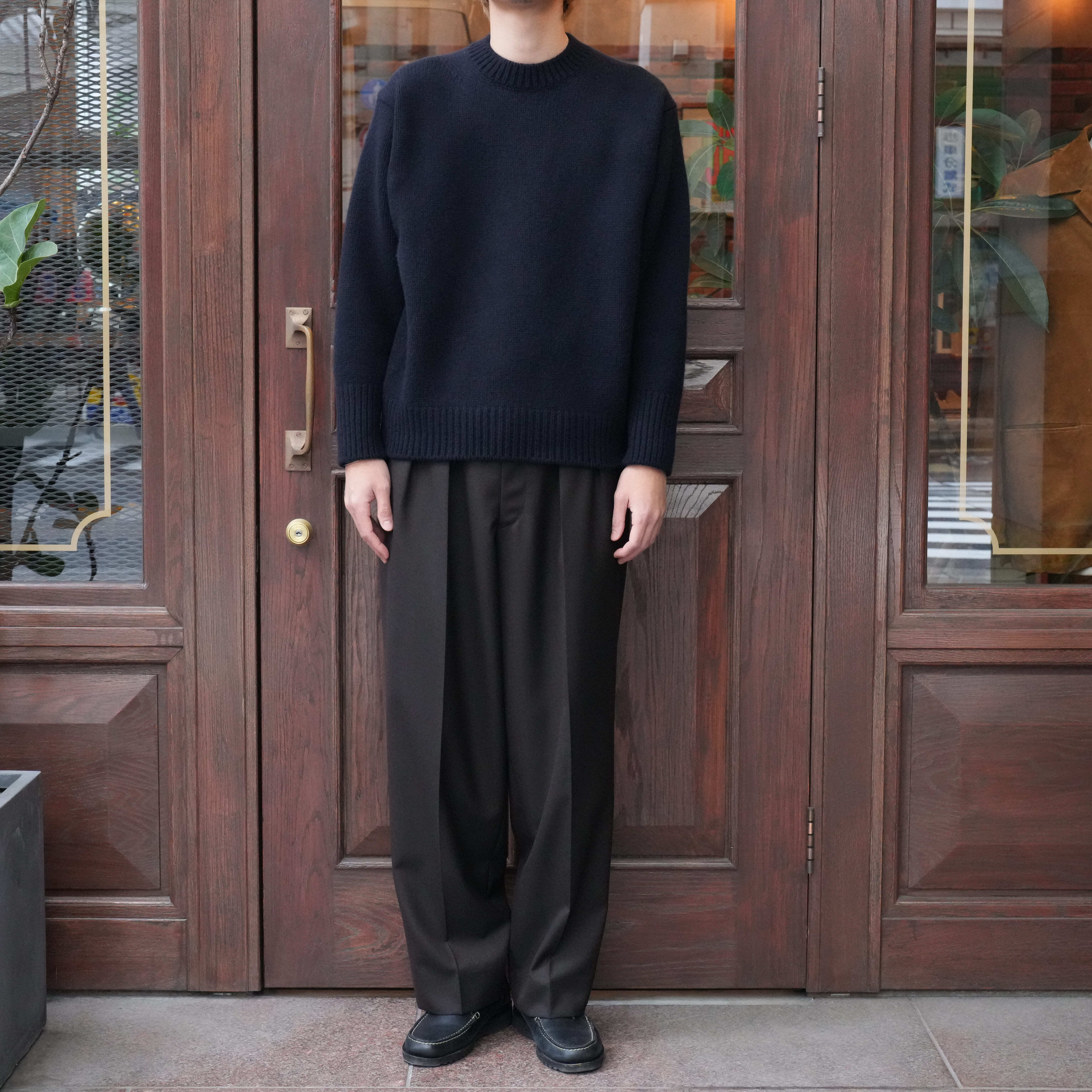 正直デザインで多くを語ることはないですが、ただのクルーネックニットだと思って侮ってはいけない。ドーターらしく素材は極上、ベビーカシミヤを使用した贅沢なニットです。肌当たりの良さや保温性に関しては言うまでもなく、とにかく着ていて気持ちがいい。シンプルなクルーネック、だが着て包まれている幸福感や高揚感は半端じゃない、、、