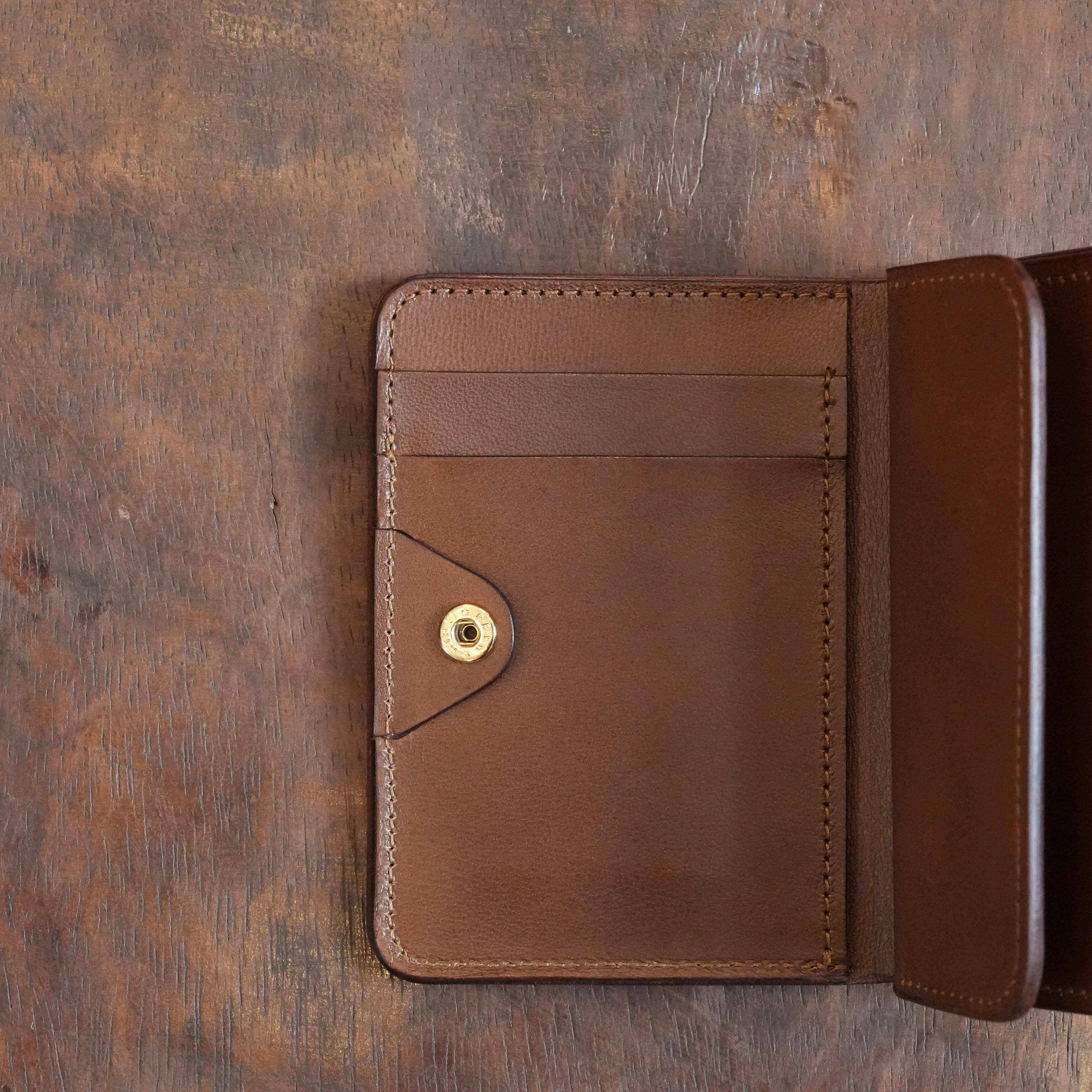 "Short Wallet"よりもコンパクトで持ち運びしやすいサイズ感ですが、お札を折らずに収納でき、カードや小銭などもしっかり収納できるなど十分な容量があります。コインスペースは開閉しやすく、カード入れても使用できる設計になっているなど、使う人に合わせることができる、まさに今の時代に適したデザインです。その中でフォルメらしい繊細で丁寧な作りからは美しさを感じられます。