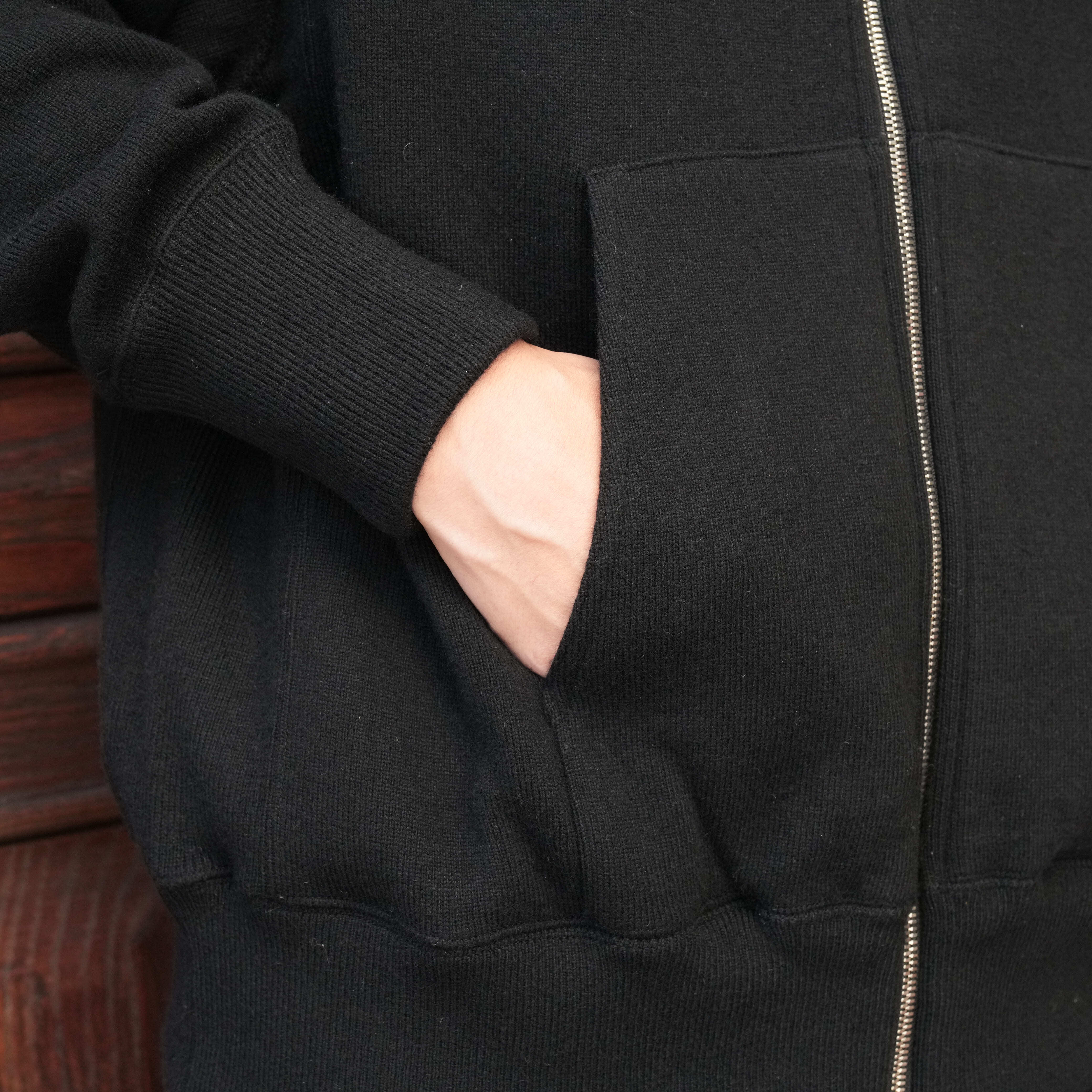 実は以前もジップパーカーが展開されていたとのことですが、今回店主の要望に応えて再度ダブルジップで展開していただきました。フルジップならではの様々な着こなしを楽しめます。フーディーのタイプはクルーネックと比べて、使ってる糸の量が増え、作りが複雑になっているので特に重厚感があります。極上の着心地のジップパーカーを是非お試し下さい。