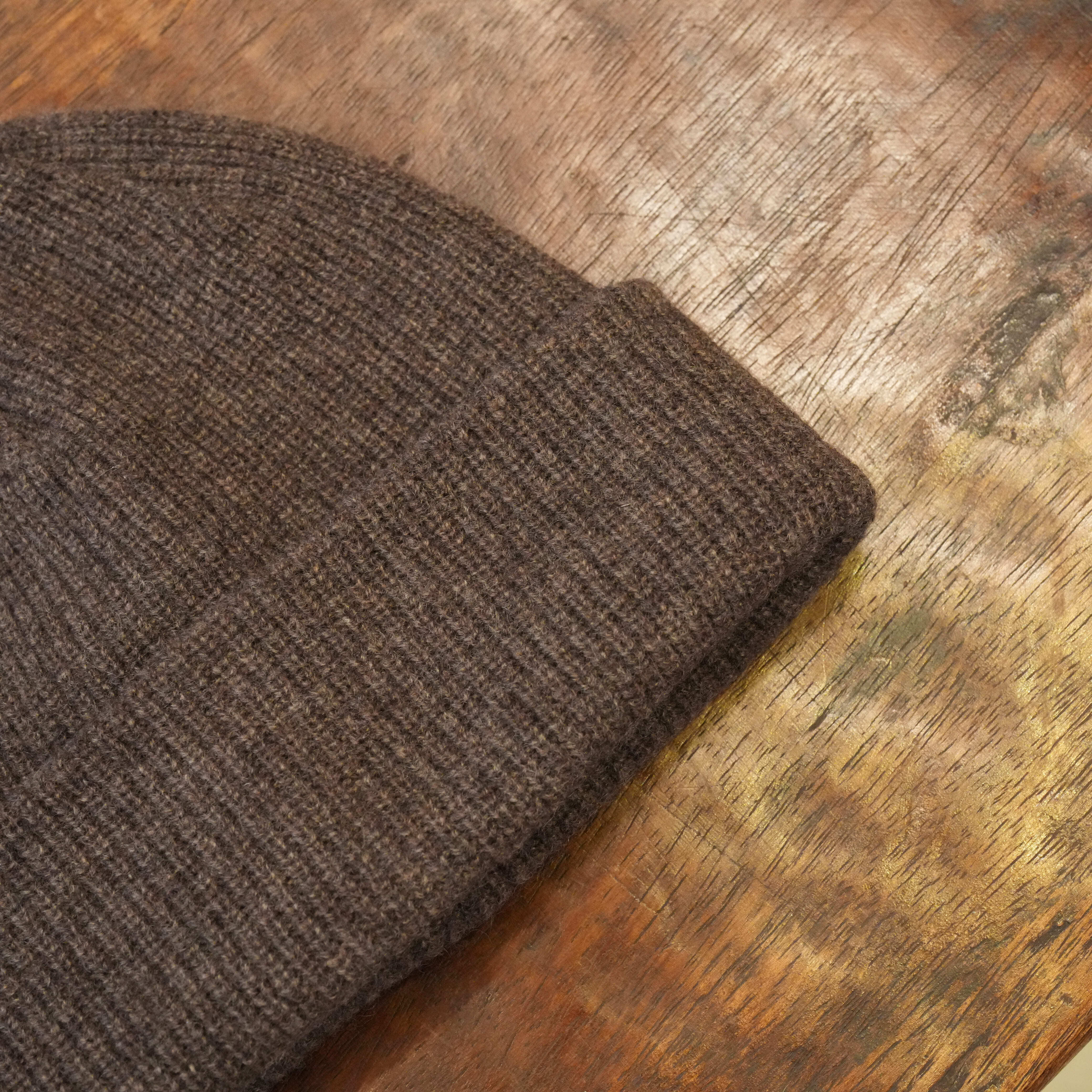 柔らかく肌触りの良いカシミヤニット帽。二枚仕立てにすることで保温性とフィット性も高めています。トップ部分をハギ仕様にし丸みのあるシルエットに仕上げています。
