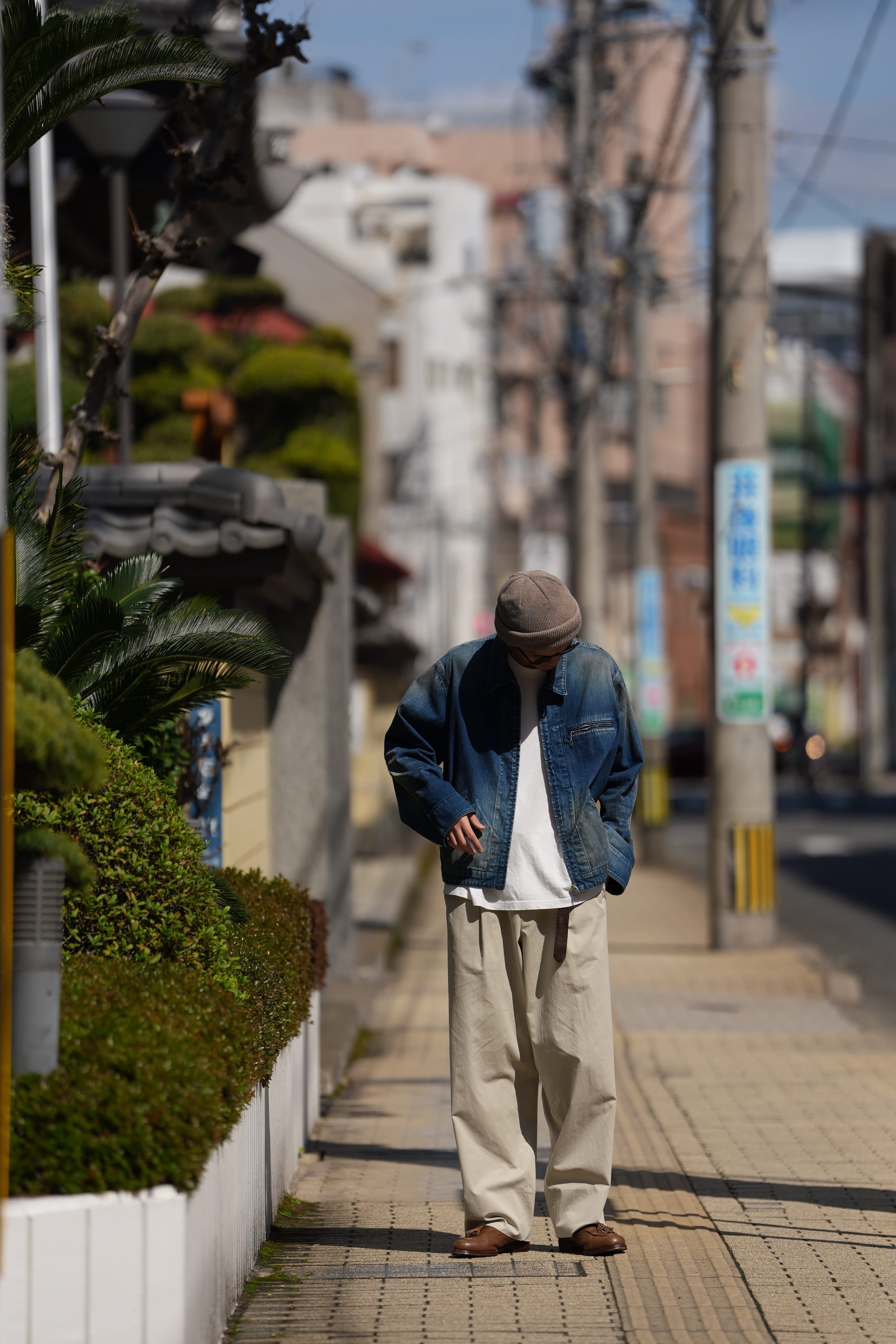ボトム:MAATEE&SONS(マーティーアンドサンズ) 26SS "CHINO B/ヌメGABA" -FADEIVORY- 着用サイズ2