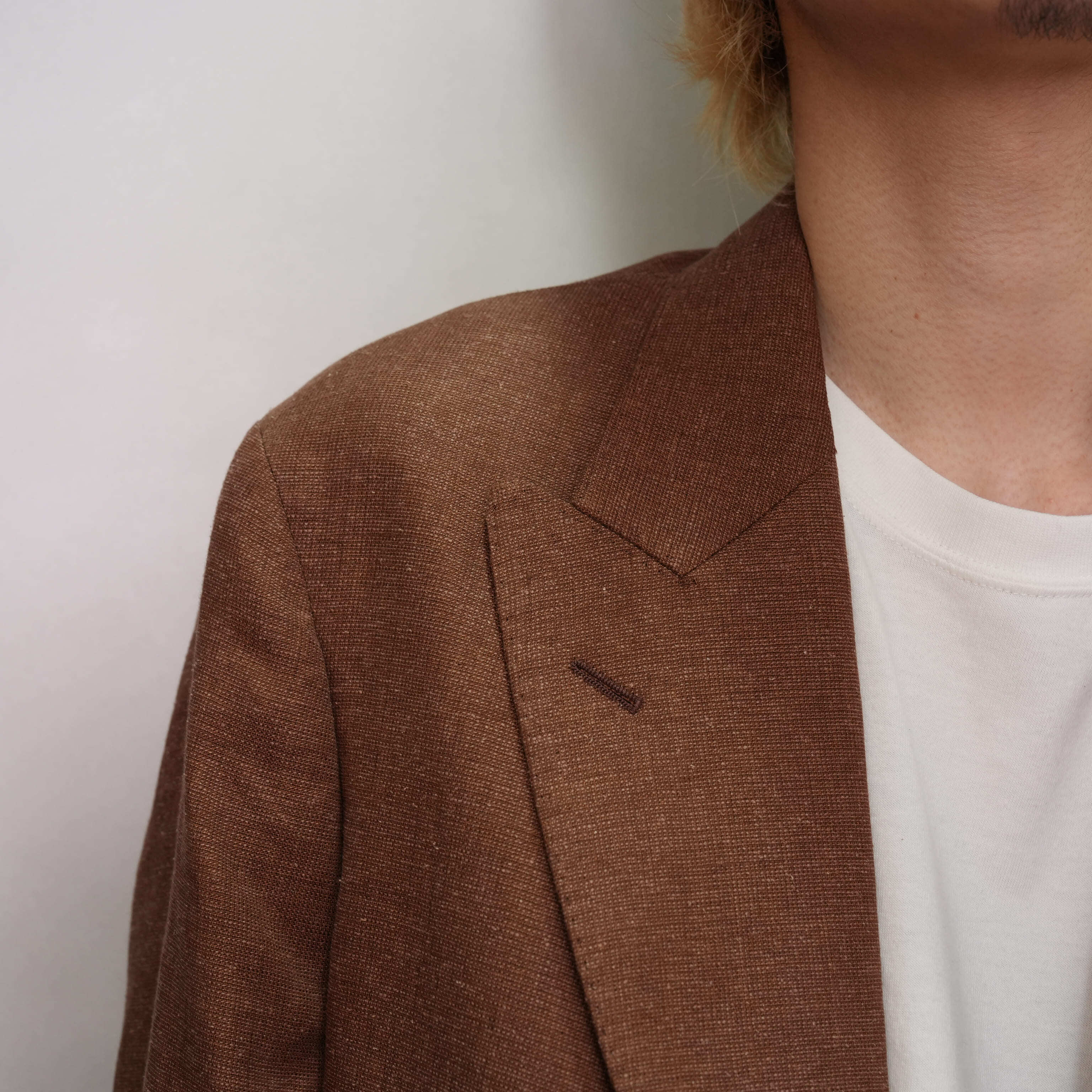 細番手のリネンとシルクを使用してクラシカルな変則メッシュ組織に織り上げたSSシーズンの定番素材。