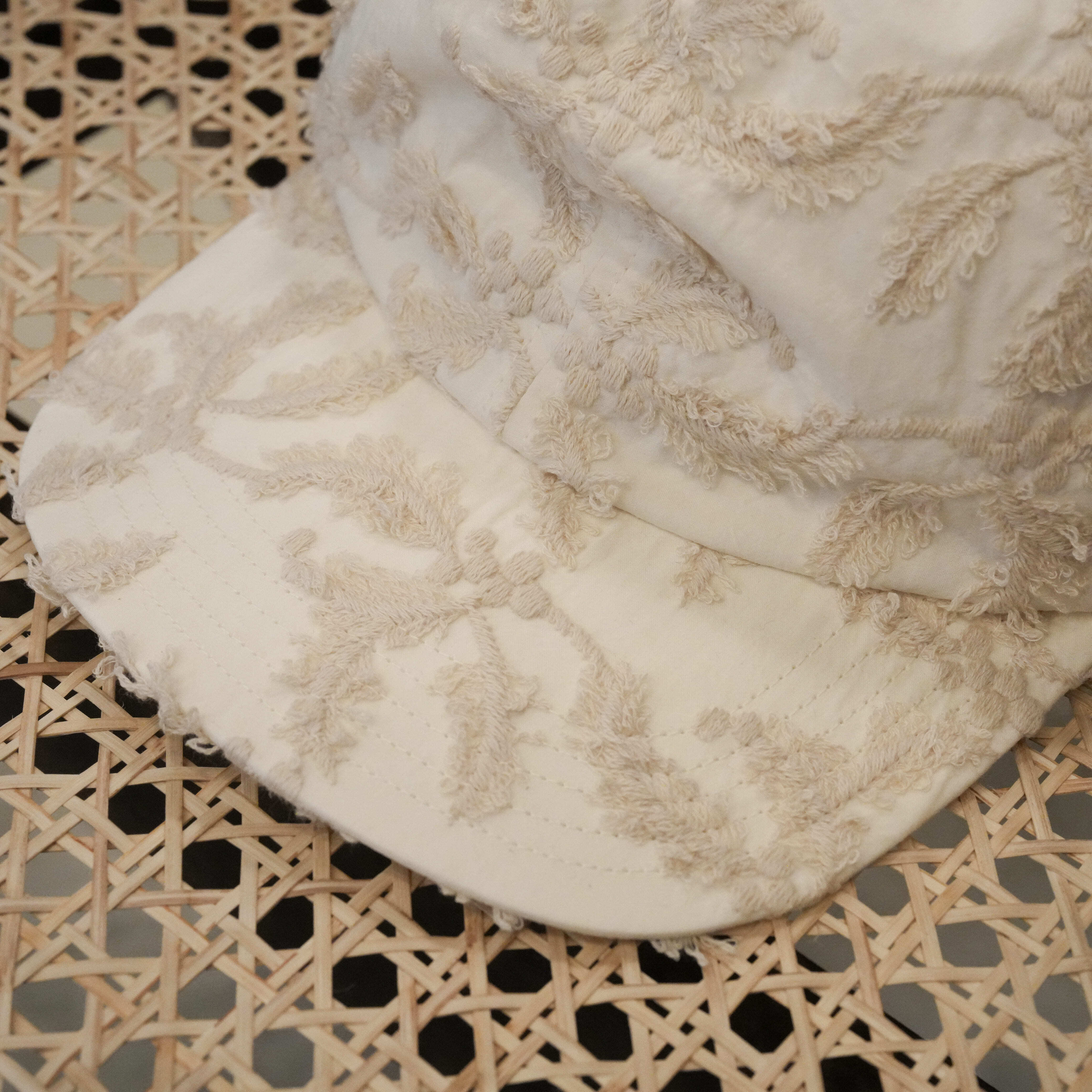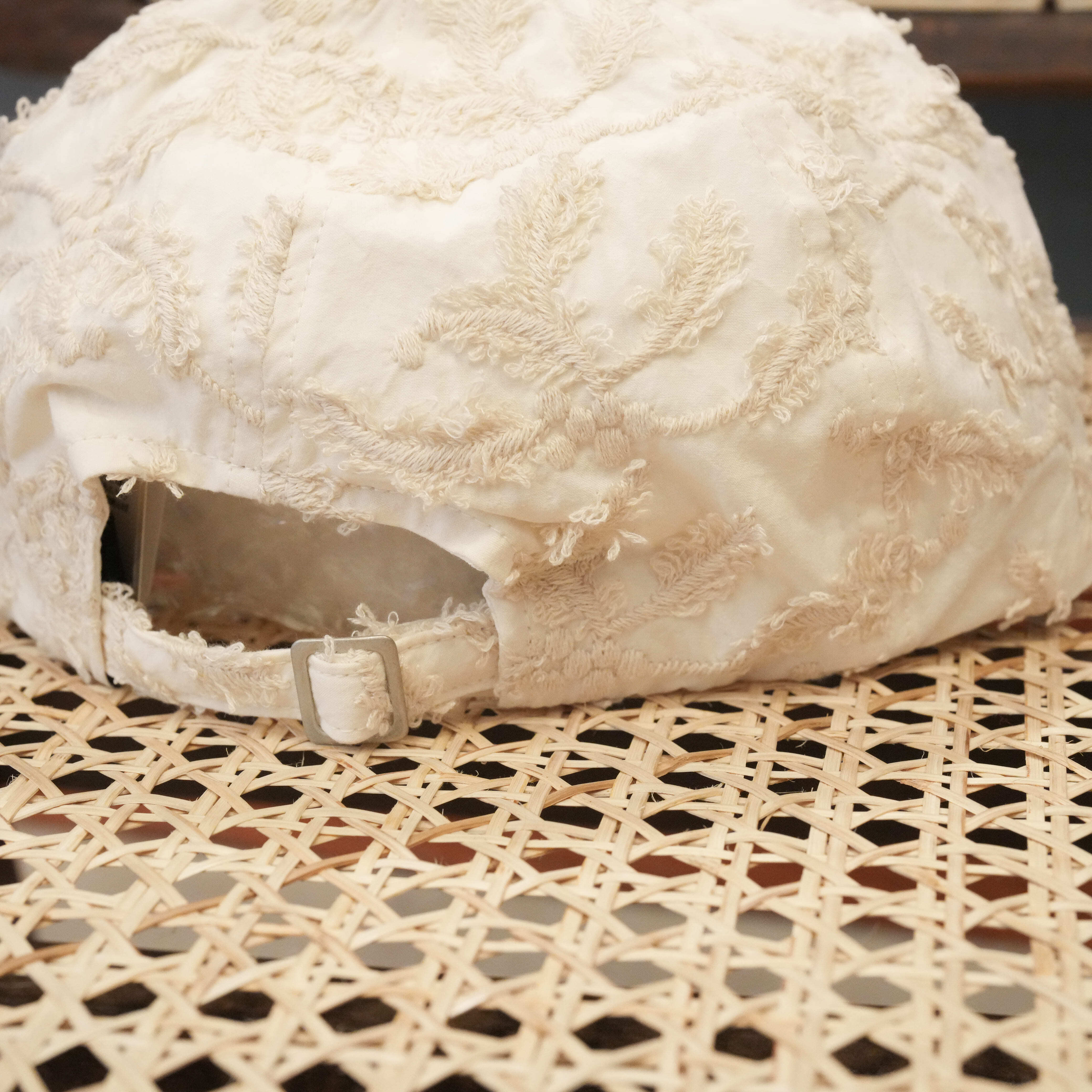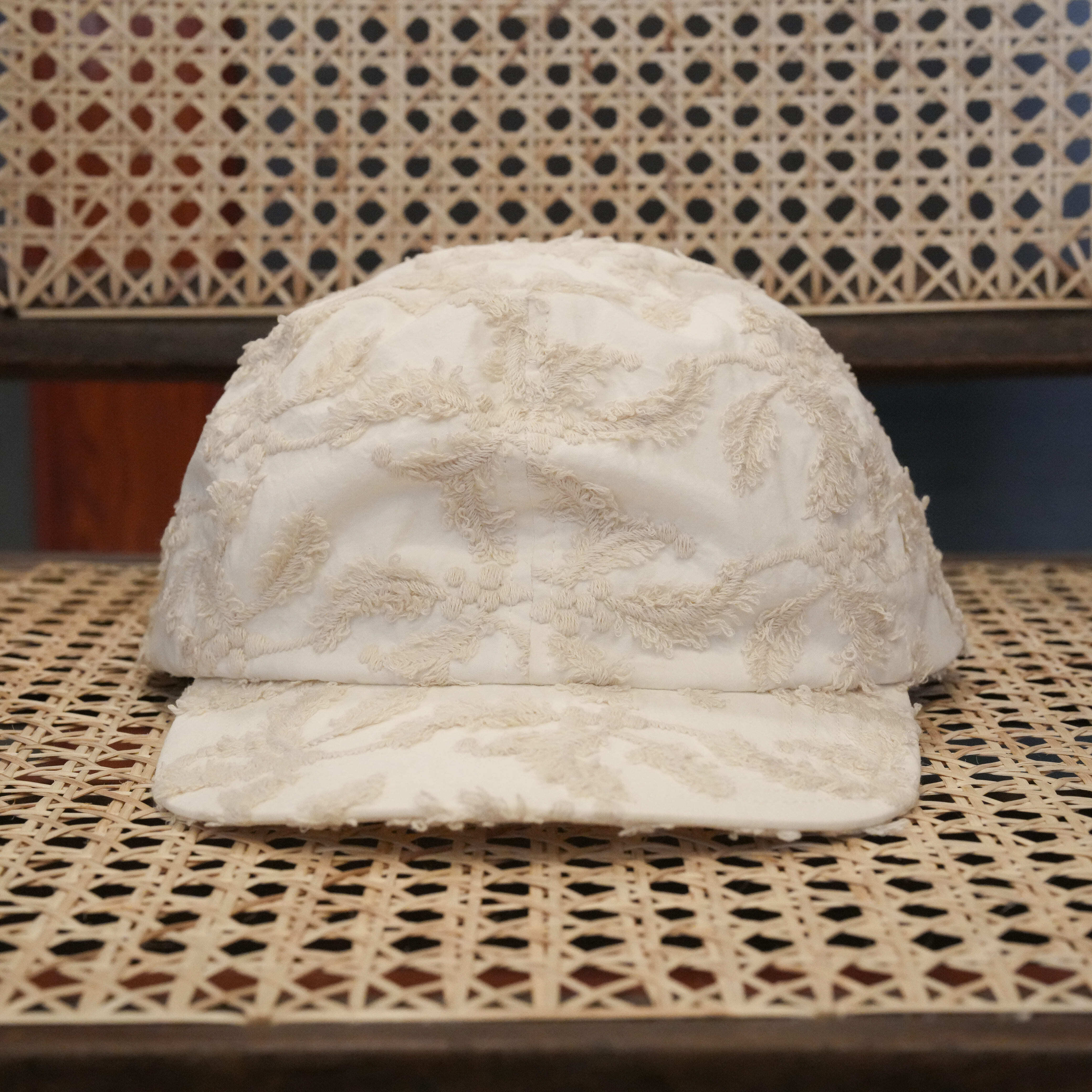 ボタニカル柄の刺繍をあしらった6パネルキャップ。