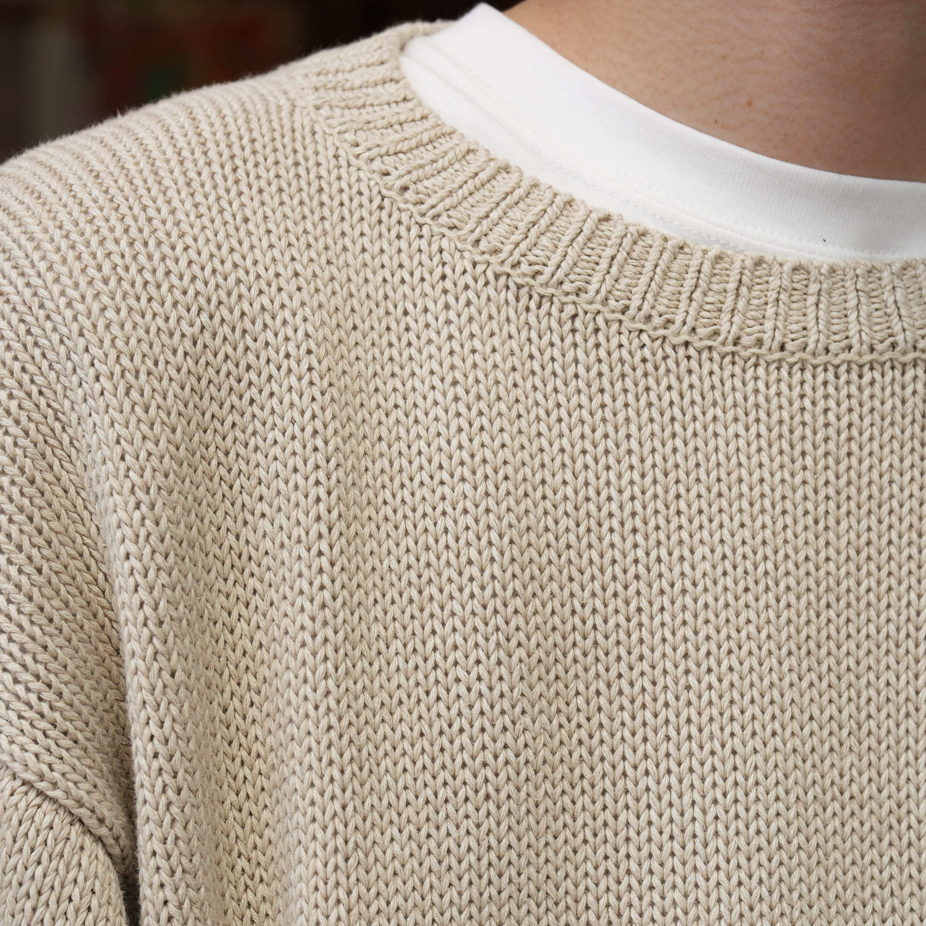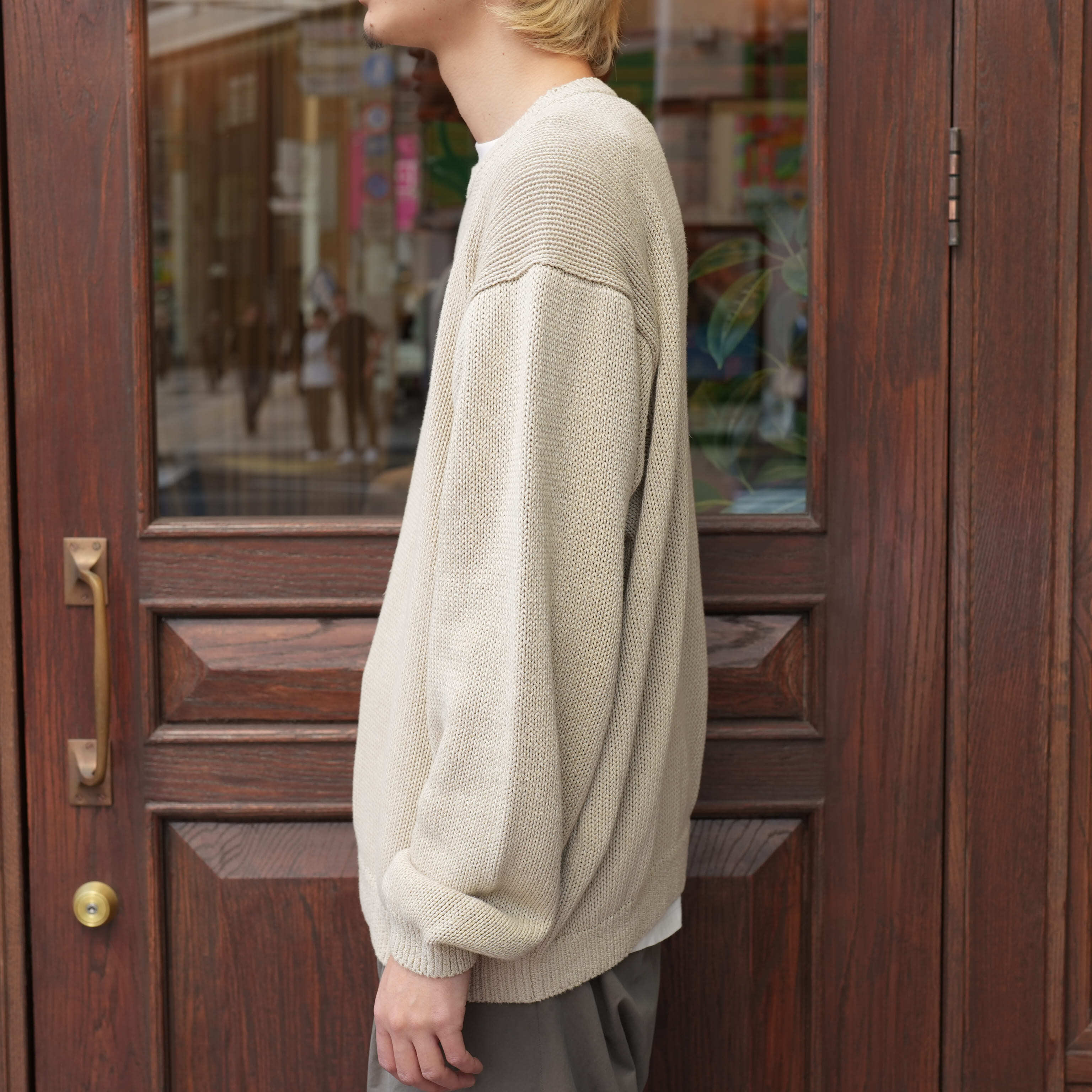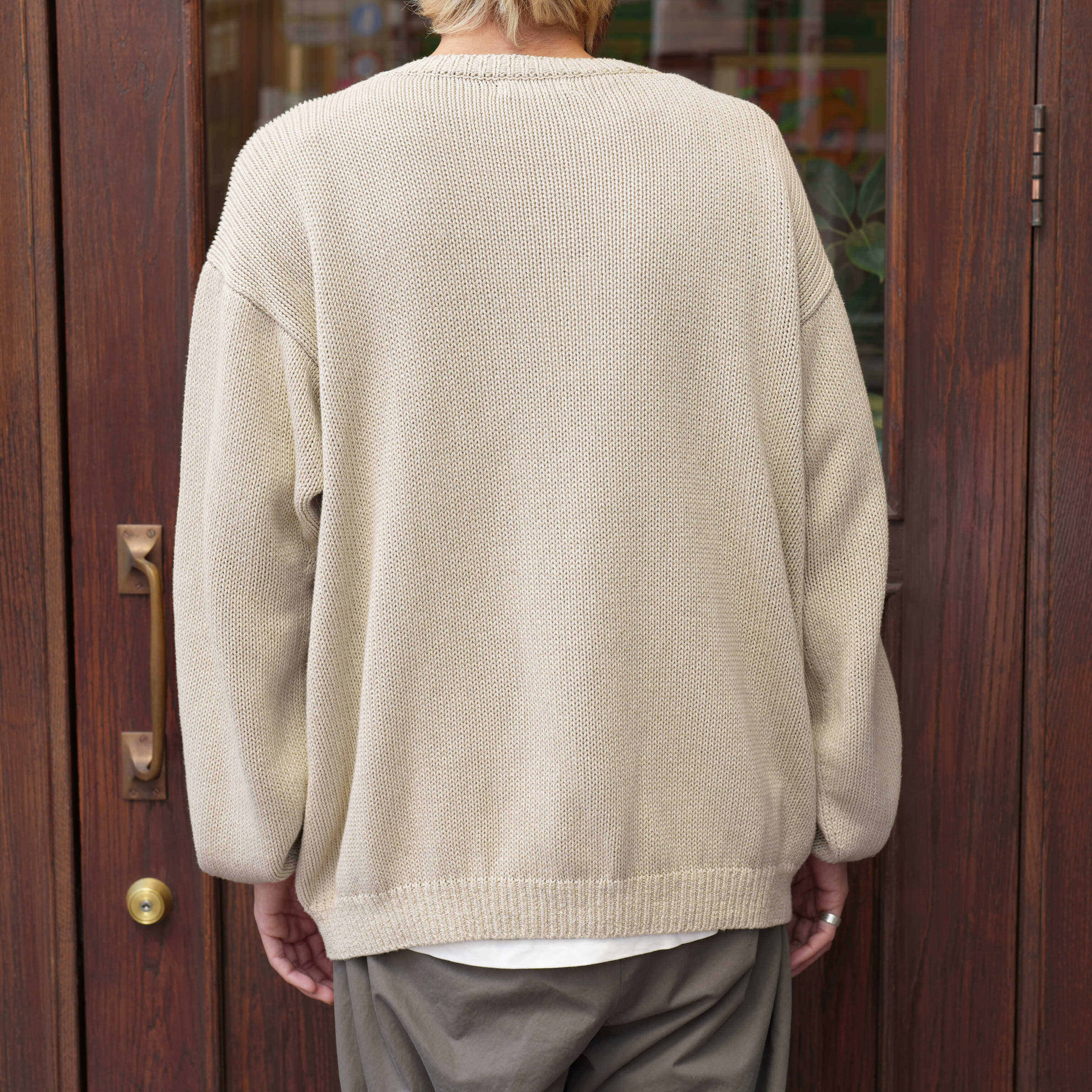 全てが上手く掛け合わさる事によって生み出されたニットは、ただのコットンニットやリネンニットとは全くの別物で着るシーズンは長く、それでいてドライな肌あたりがジメジメした環境でも快適に着用が出来ます。
