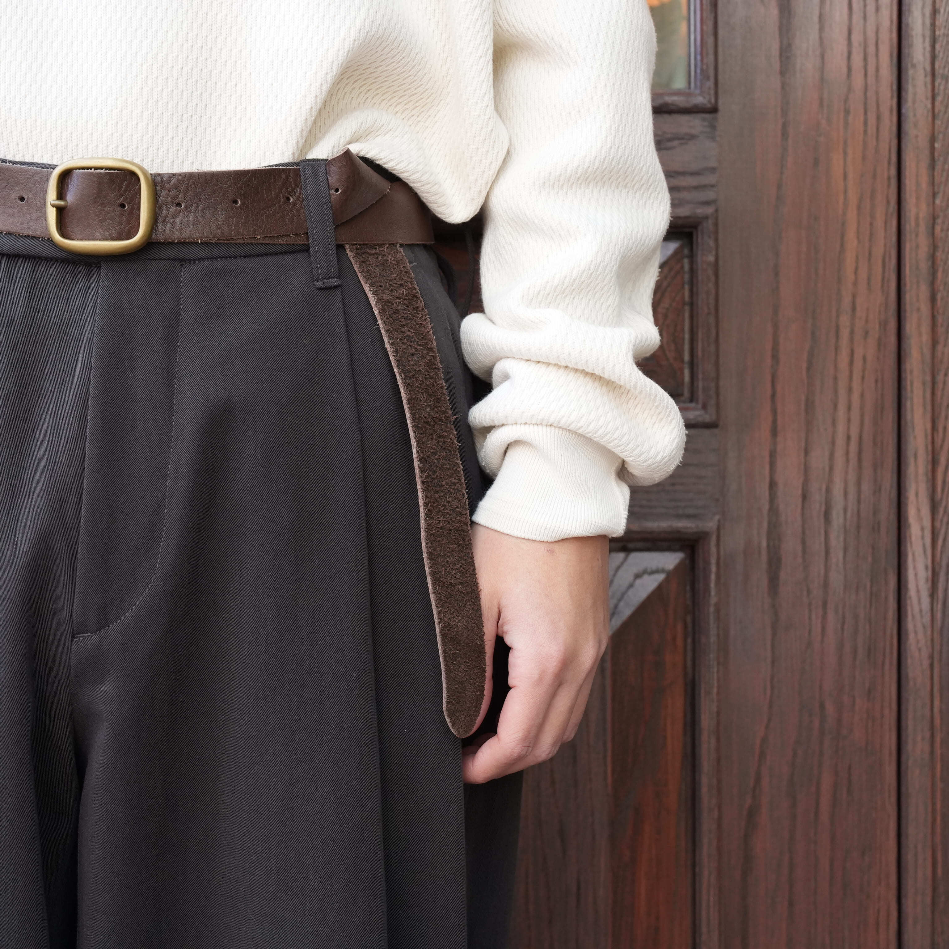 ボトムの種類関係なしほぼ毎日使っていたレザーベルトの良さは全て残しつつ、Gurankらしい力強い空気感を感じる逸品が完成しました。