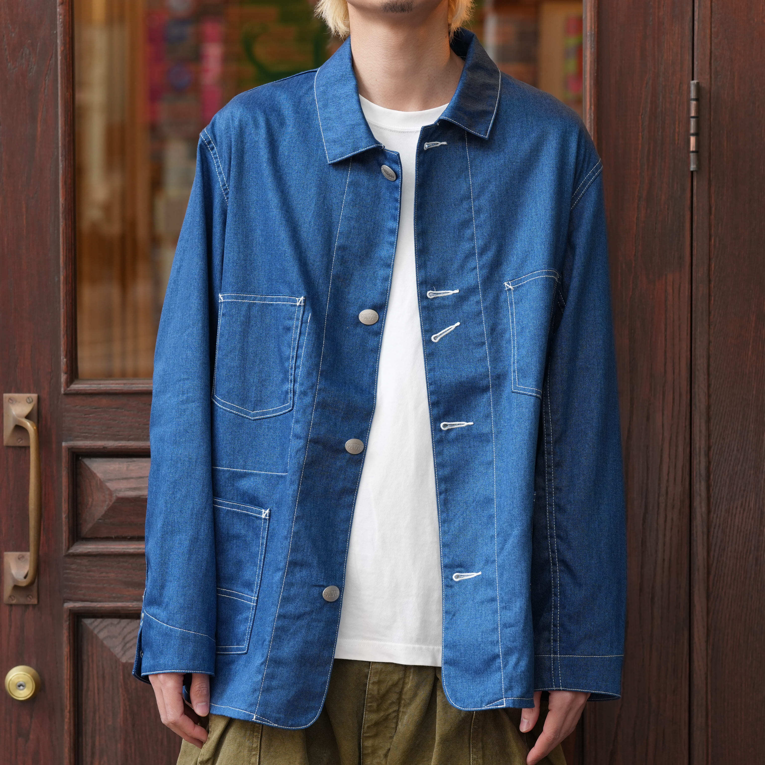 FOUNDOUR (ファウンダ) 26SS "PRINT DENIM COVERALL JACKET" -BLUE-