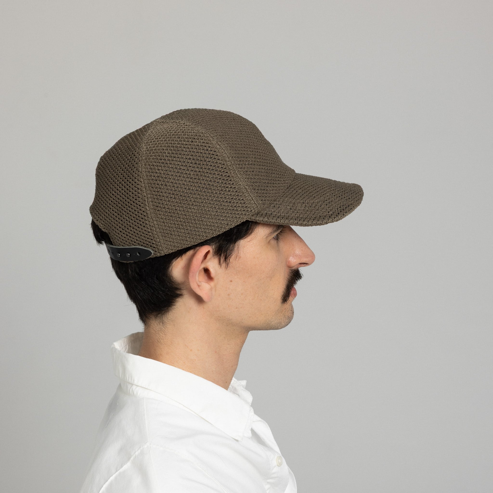 麻のような風合いと程よい透け感で、涼しげな印象に仕上げたキャップ。軽やかさを感じる柔らかな素材感とツバの長さが、性別を問わず被りやすいバランスをつくっています。裏地にはオーガンジーを合わせ、さらに清涼感をプラス。レザーベルトは使うほどになじみ、自然な風合いが深まります。