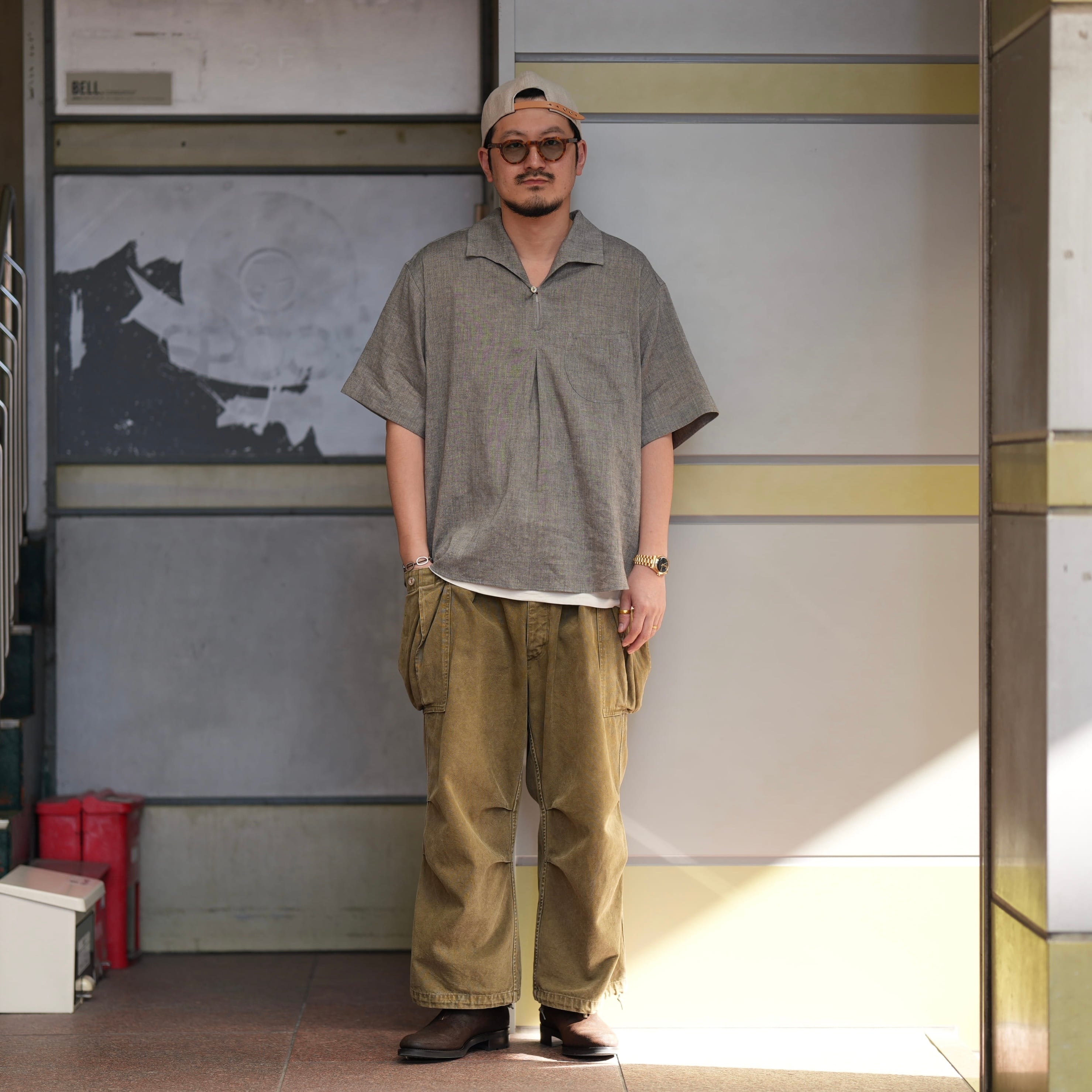 ボトム:HERILL "Duck Cargo Pants" -khaki- 着用サイズ2(私物)