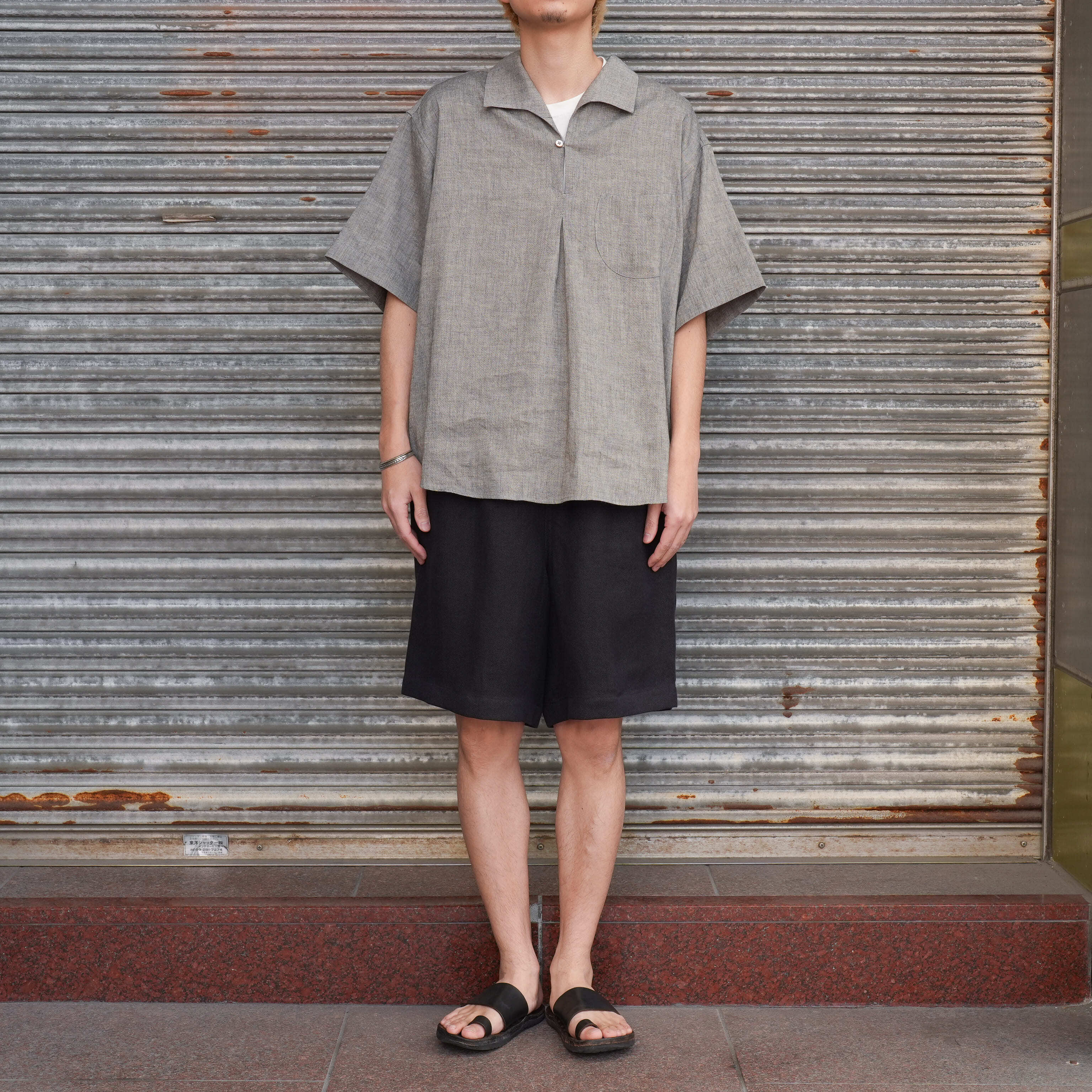 イージースタイルのショーツです。形としてはTR03から展開しました。腰のシルエットを変え、ウエスト位置からボリュームをバランスよく出しています。丈は膝が出るか出ないかを調整し、野暮ったさを消しました。他アイテムとも相性が良いので、私自身も履きたいなと思う形が出来上がったと思っています。