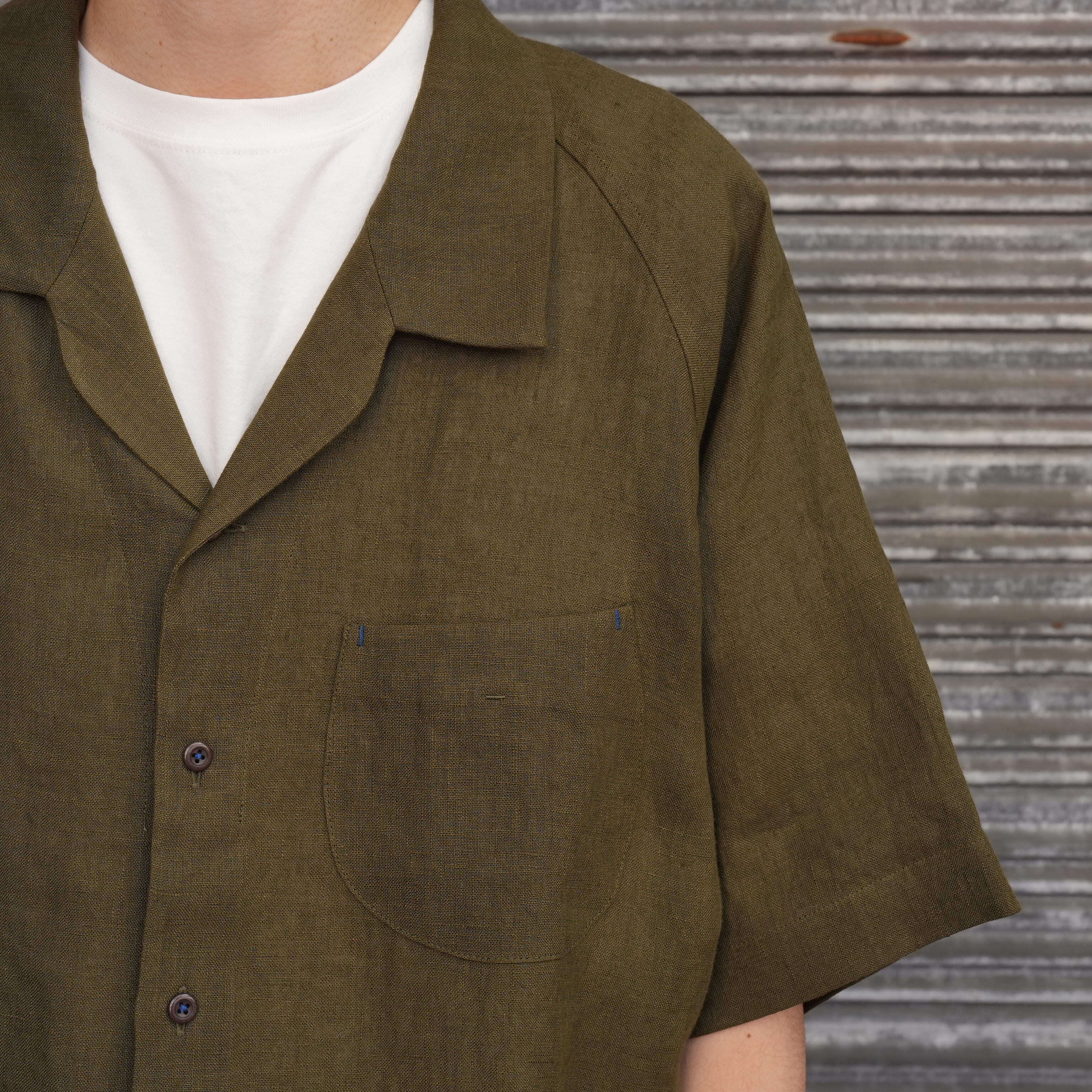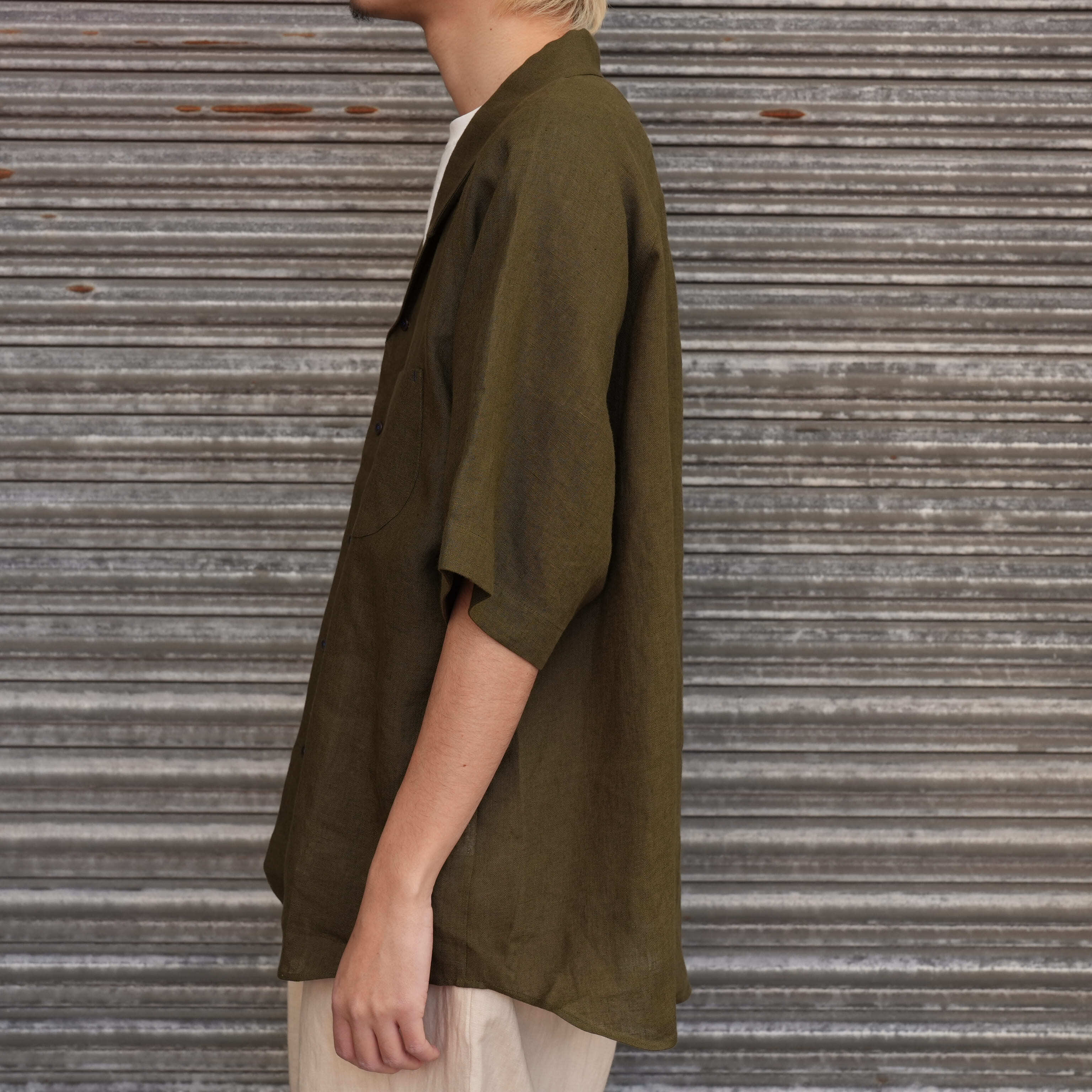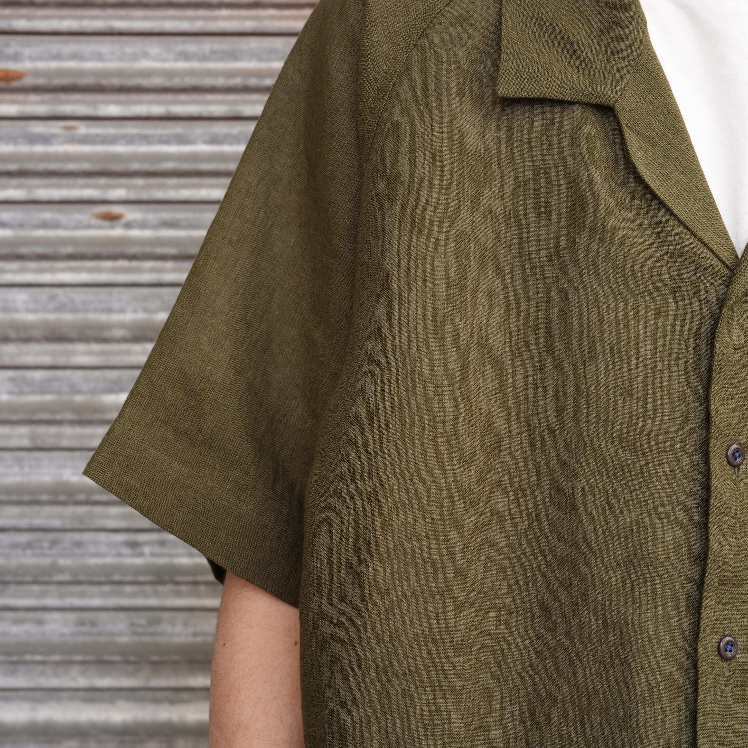 Gorsch the merry coachman(ゴーシュザメリーコーチマン) 26SS "French Linen Open Collar Raglan Short Sleeve Shirt" -Khaki Green-