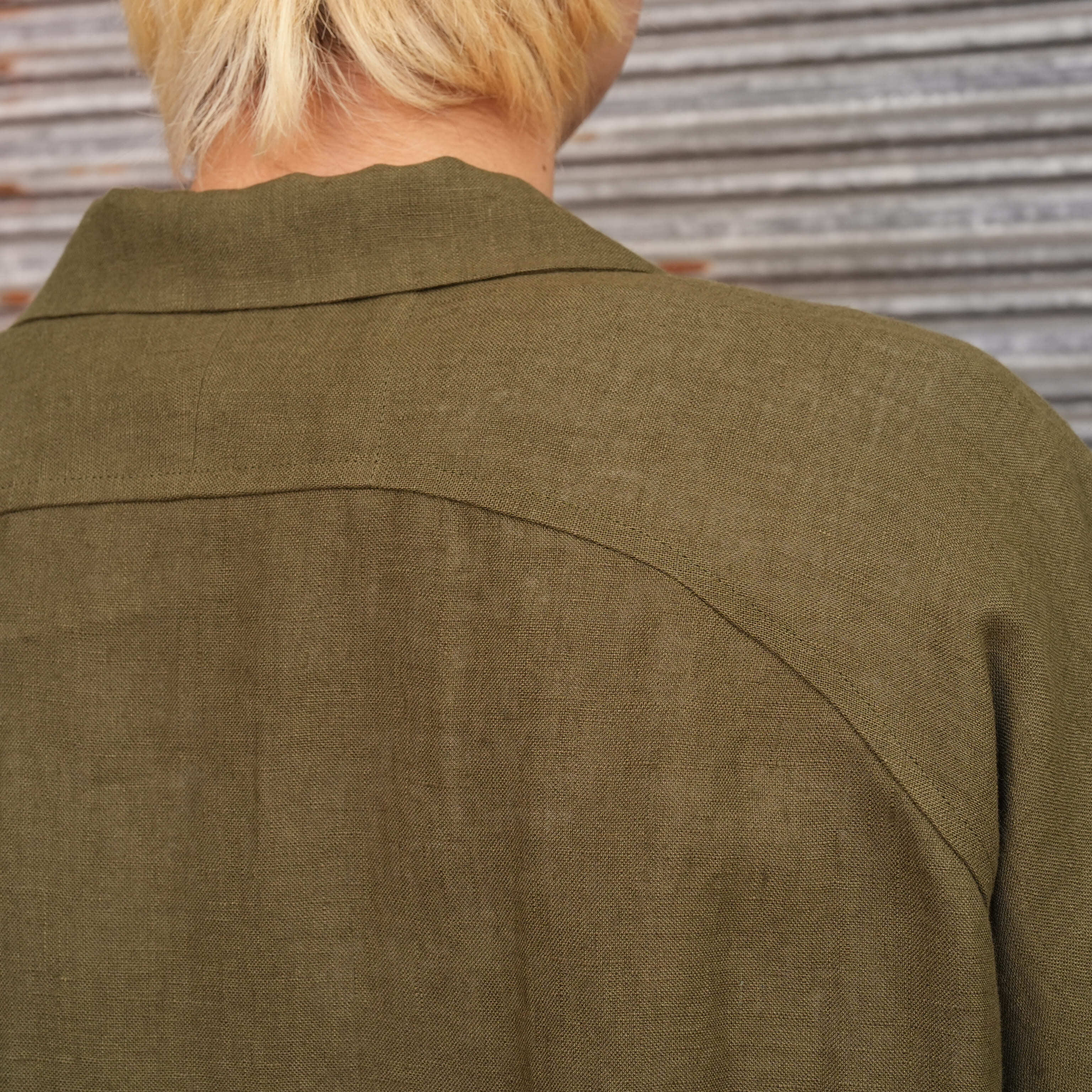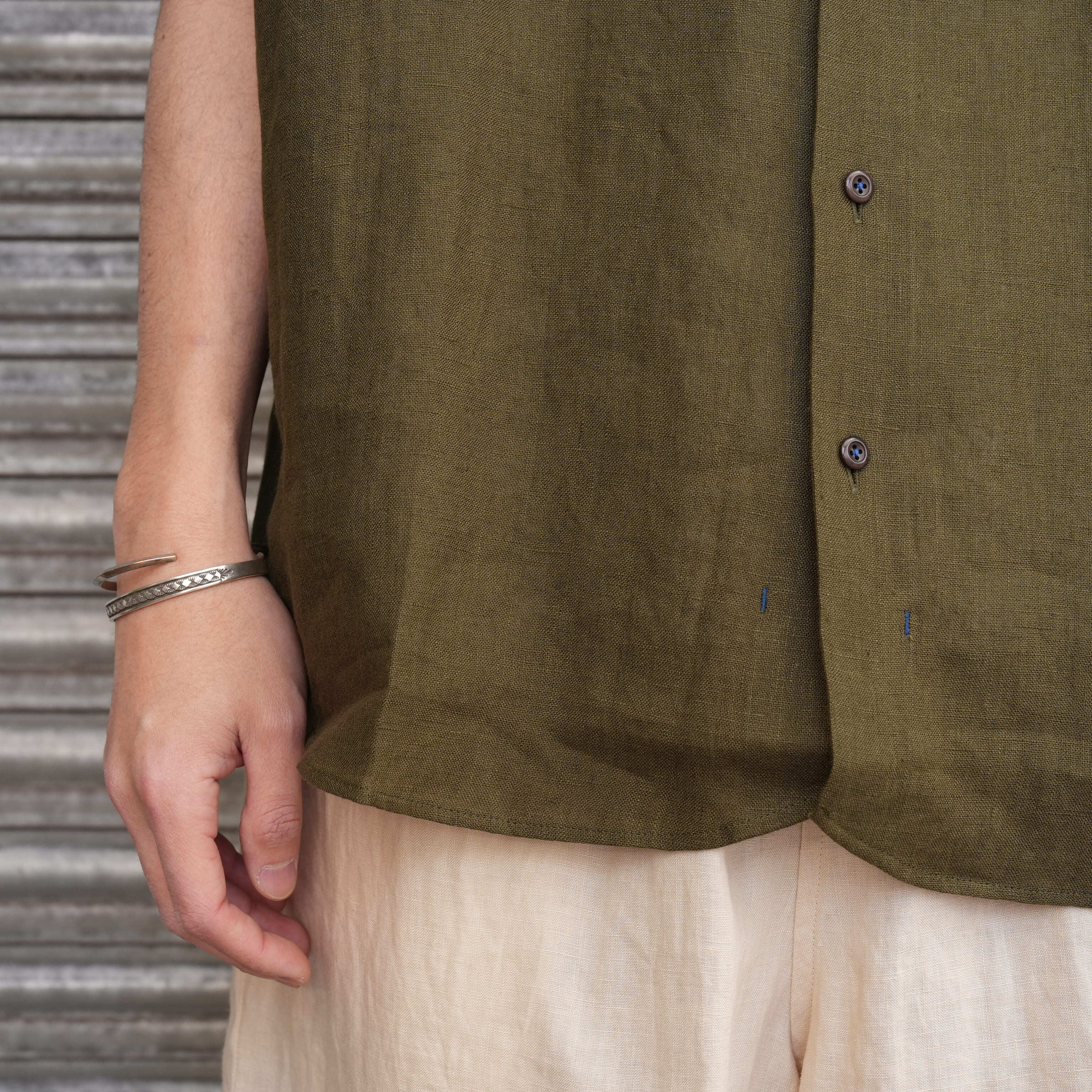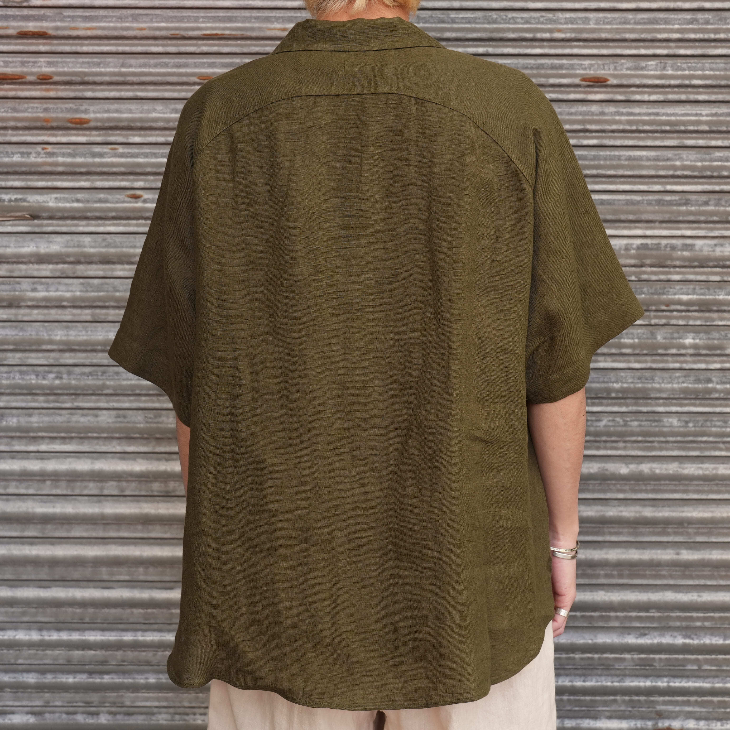 Gorsch the merry coachman(ゴーシュザメリーコーチマン) 26SS "French Linen Open Collar Raglan Short Sleeve Shirt" -Khaki Green-
