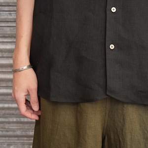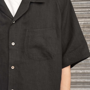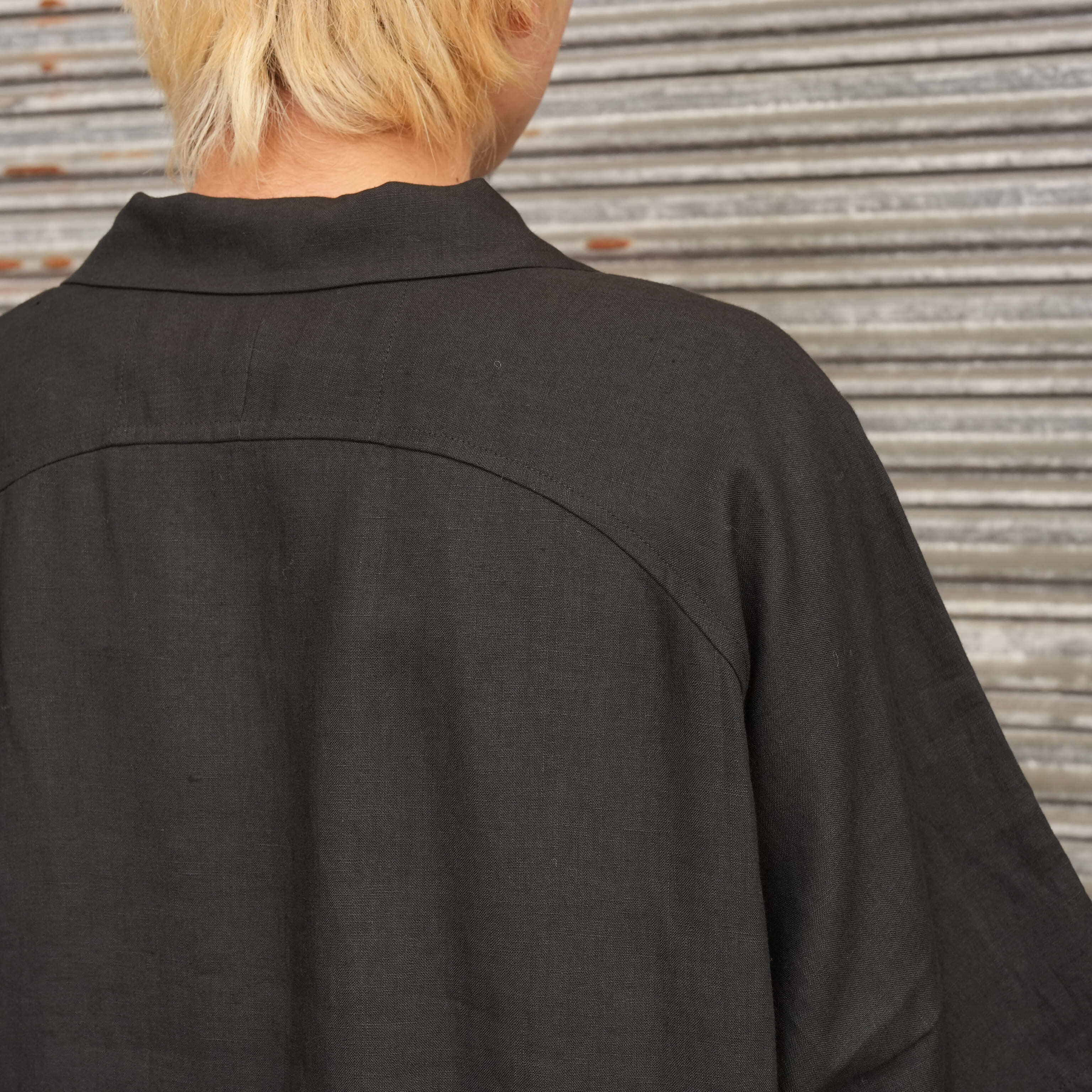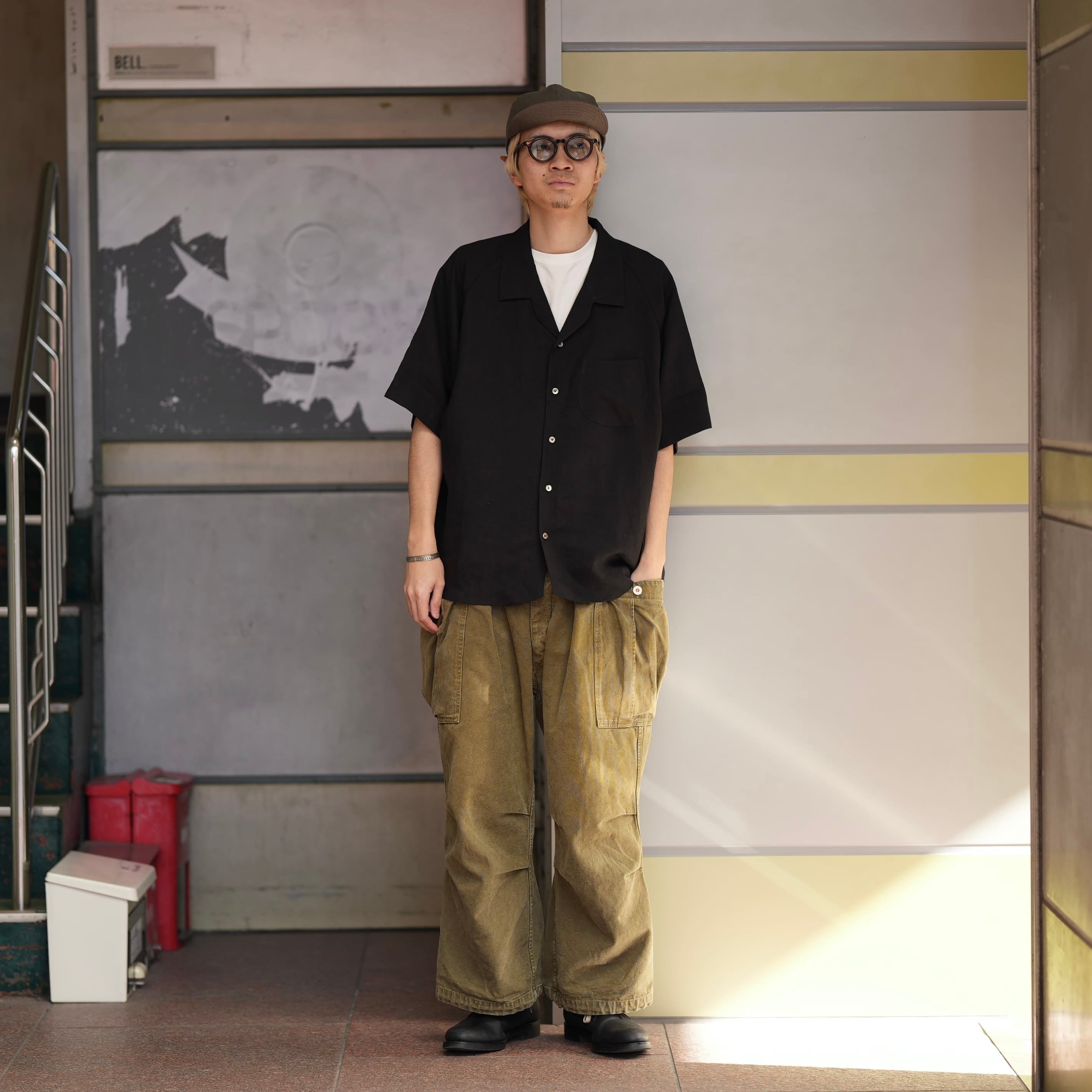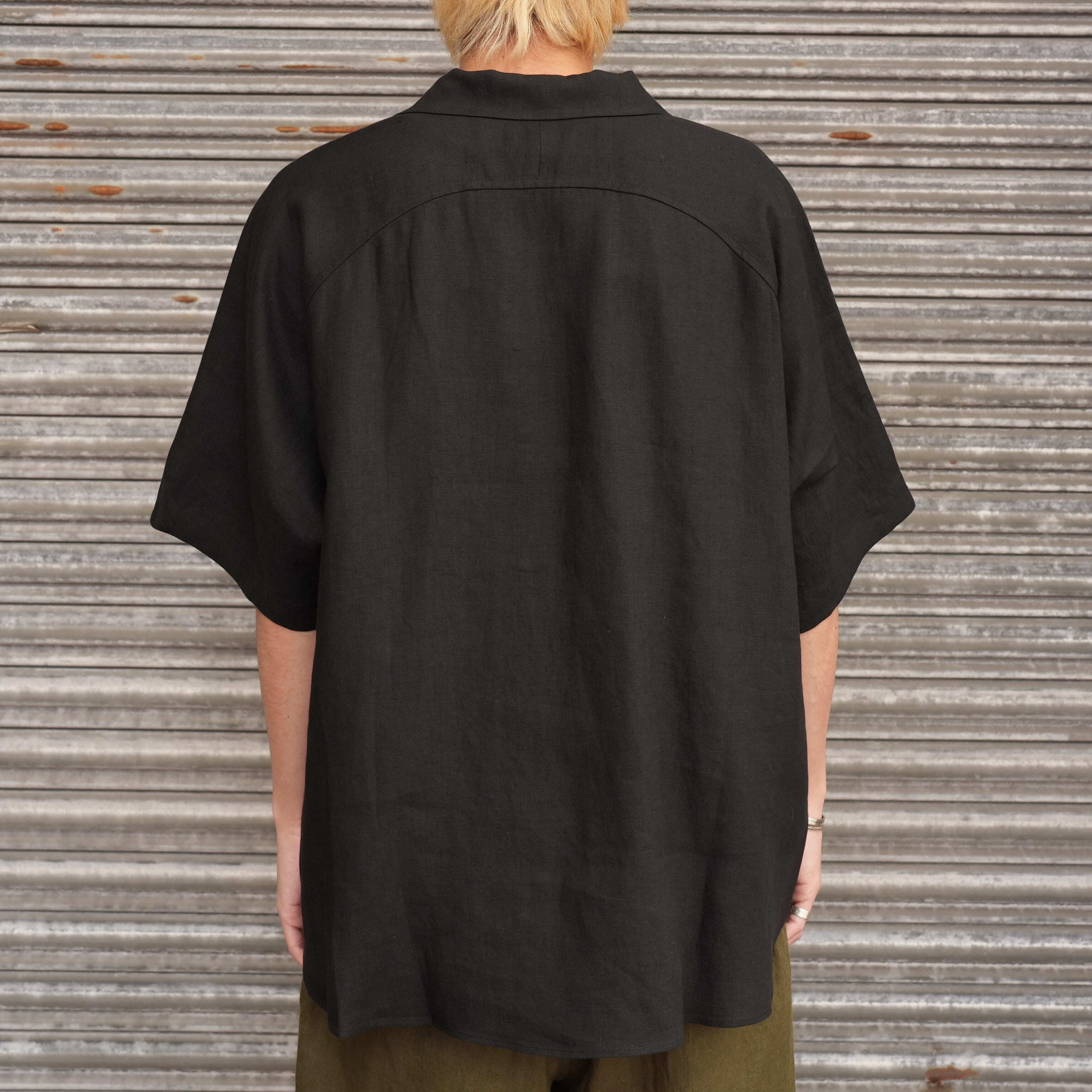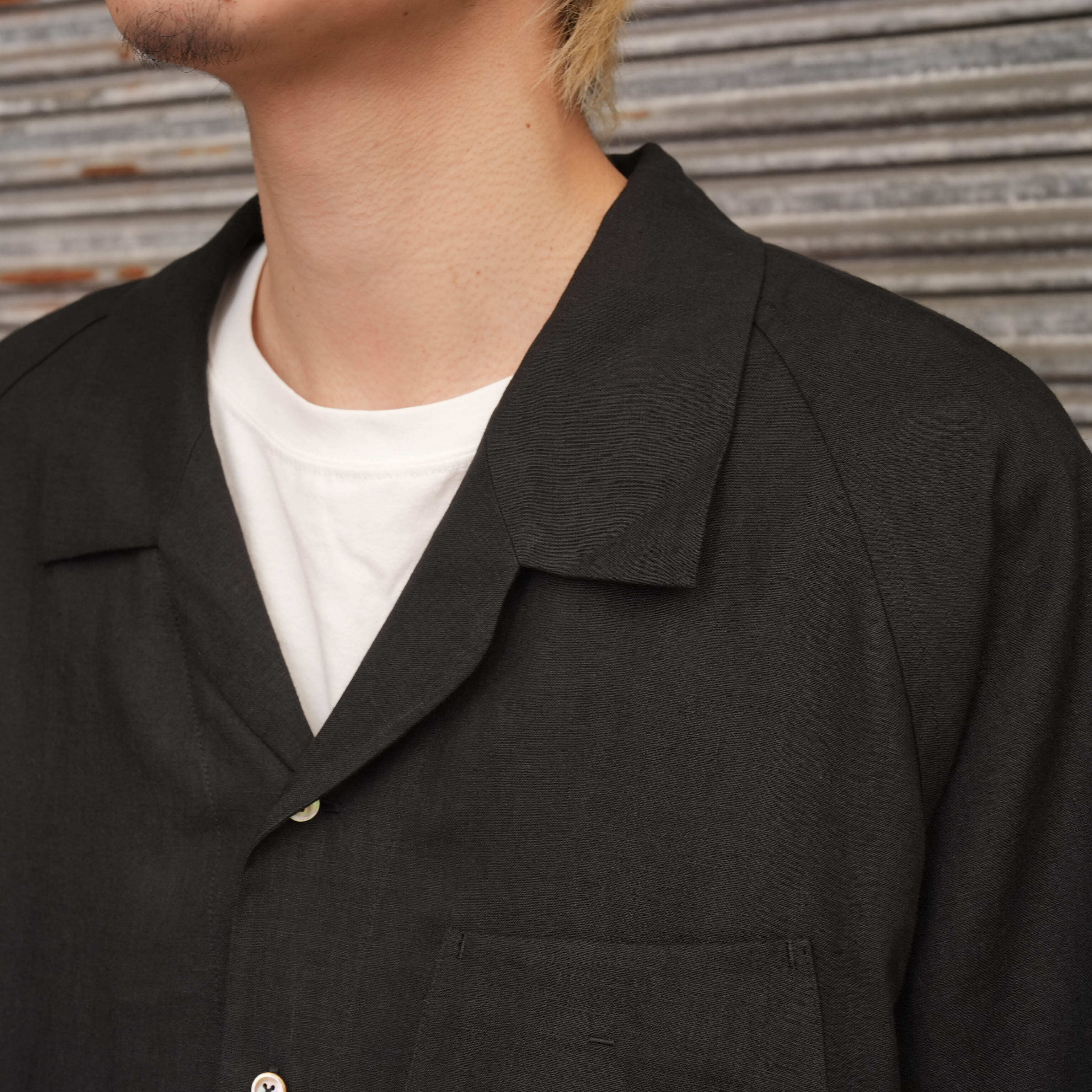 Gorsch the merry coachman(ゴーシュザメリーコーチマン) 26SS "European Linen Open Collar Raglan Short Sleeve Shirt" -Black-