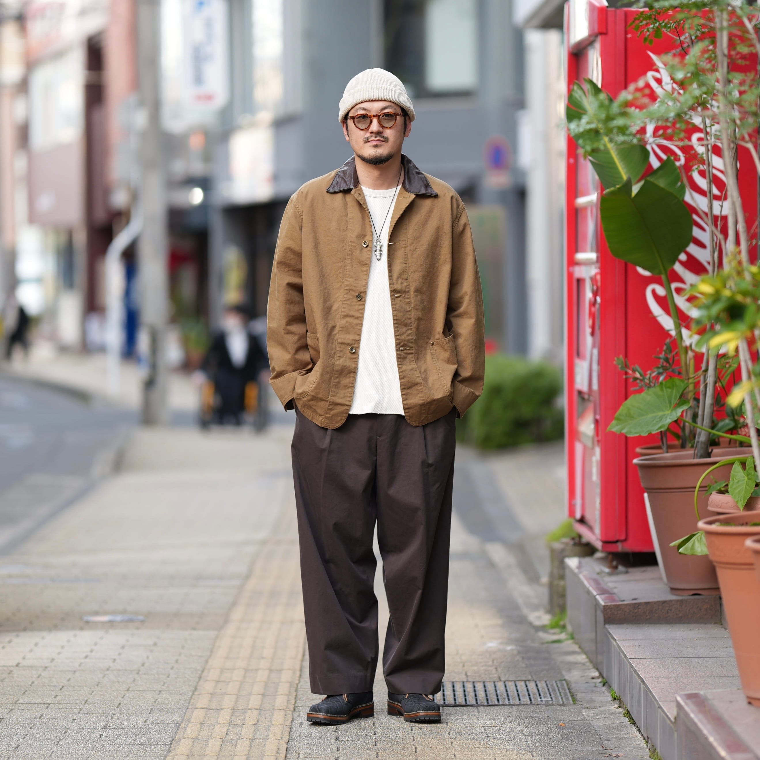 ディテールは削ぎ落としてシンプルに、形は軍パンほど複雑さはなく、新鮮味を感じるシルエット。程よいボリューム感と品の良さ、この塩梅が非常に良いです。シンプルに穿いてハマる人は多いのではないかと思います。