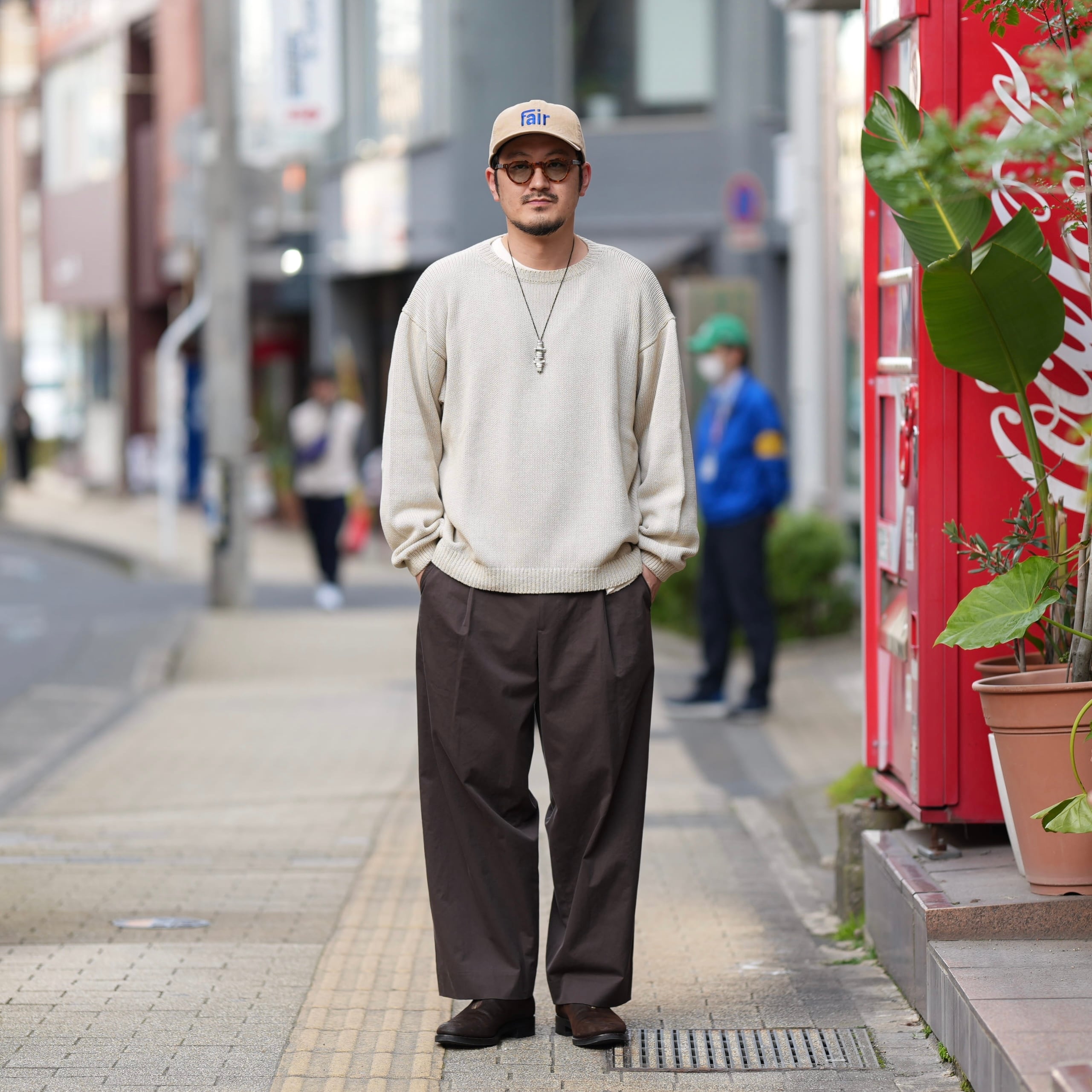 早速撮影で色々合わせましたが、、、ボリュームが出すぎることもないので色んなトップスとバランスがとりやすい、でも確かな存在感があってシンプルなスタイリングでもキマる。既にポテンシャルの高さを感じます。