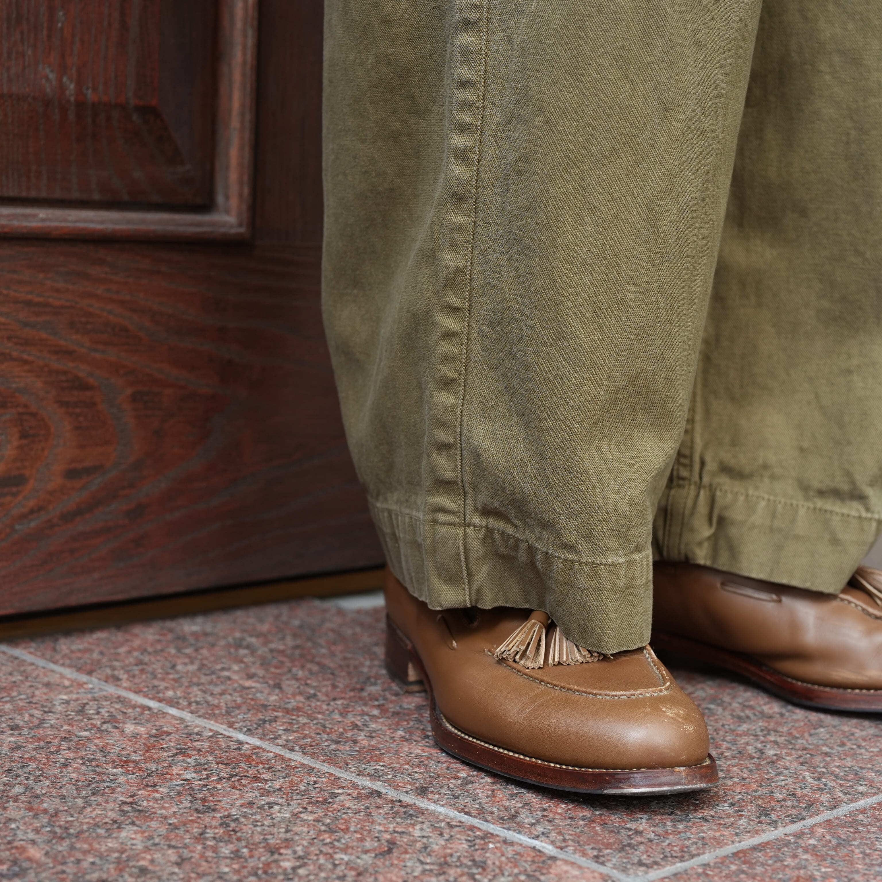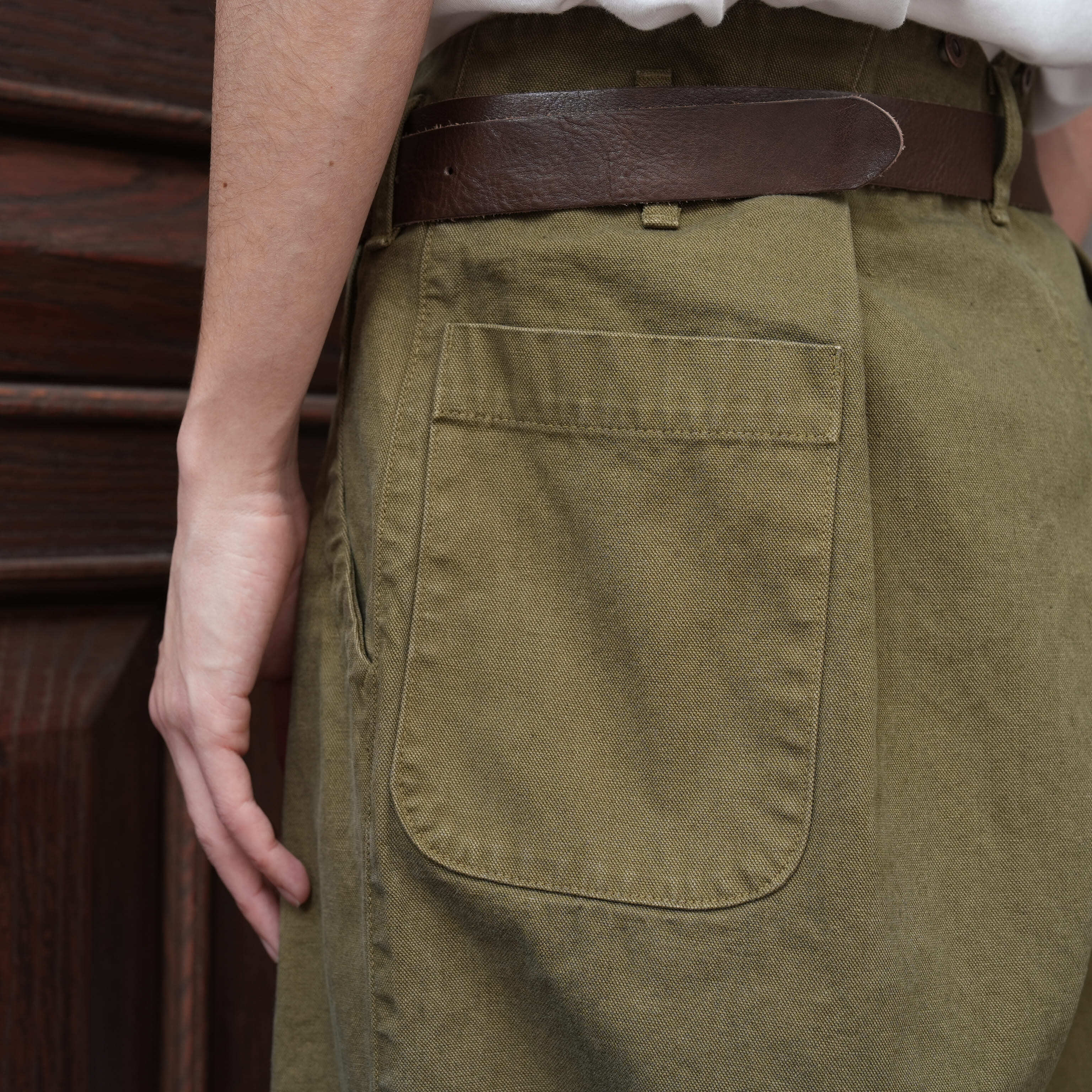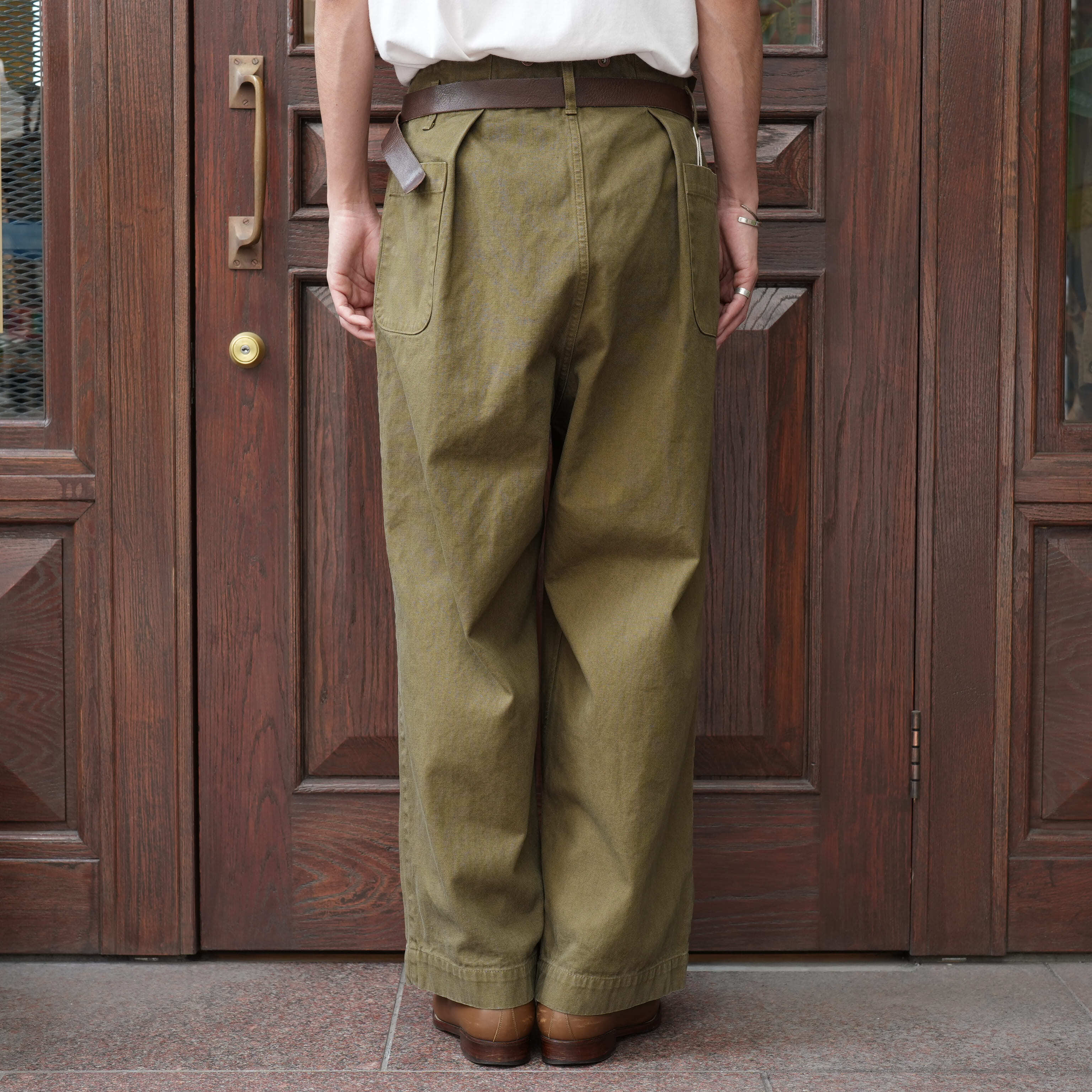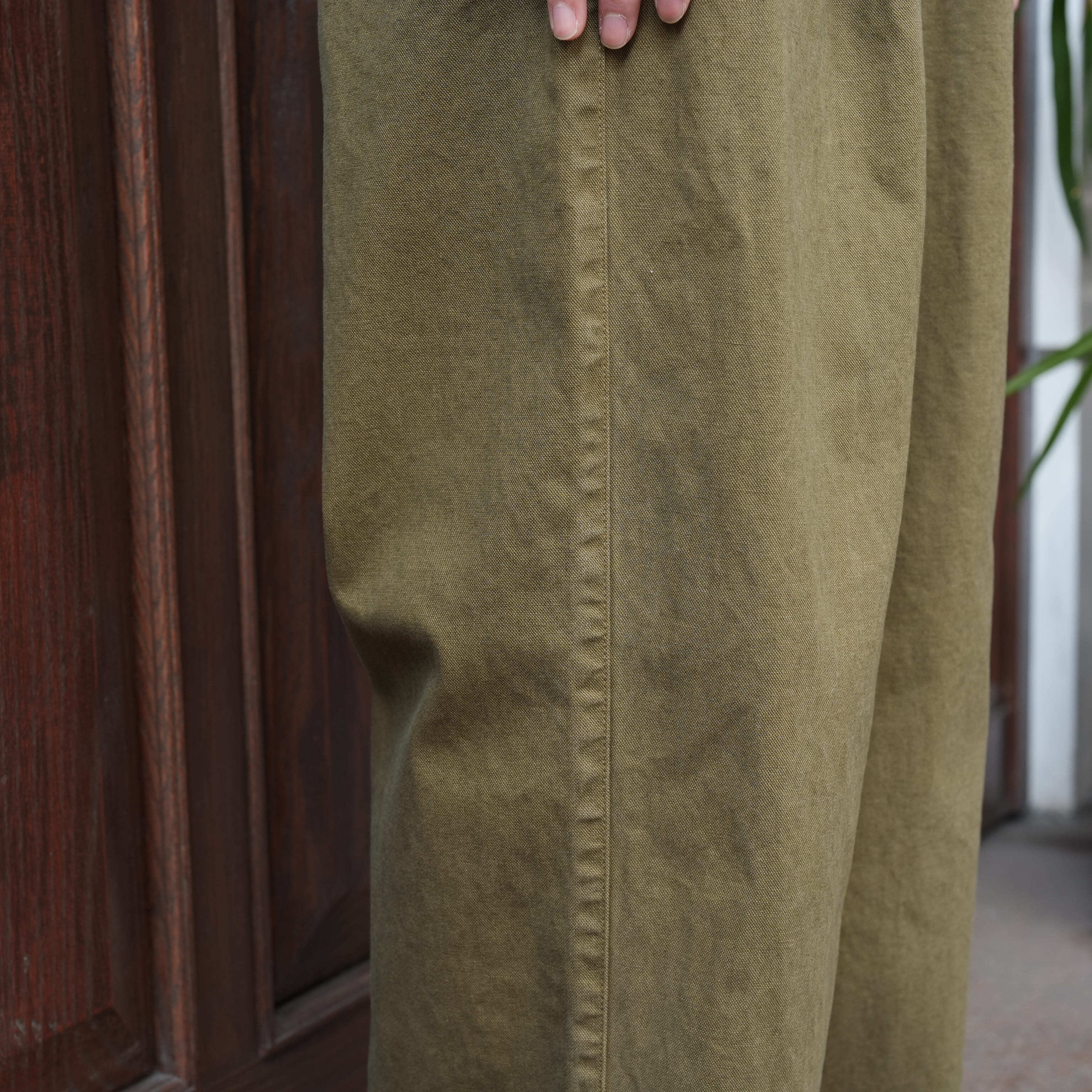 こちらはコットンヘンプで程よくハリ・コシがあり、生地の風合いが抜群に良い。アタリの出やすい雰囲気で、着用によるここからの経年変化もとにかく楽しみです。