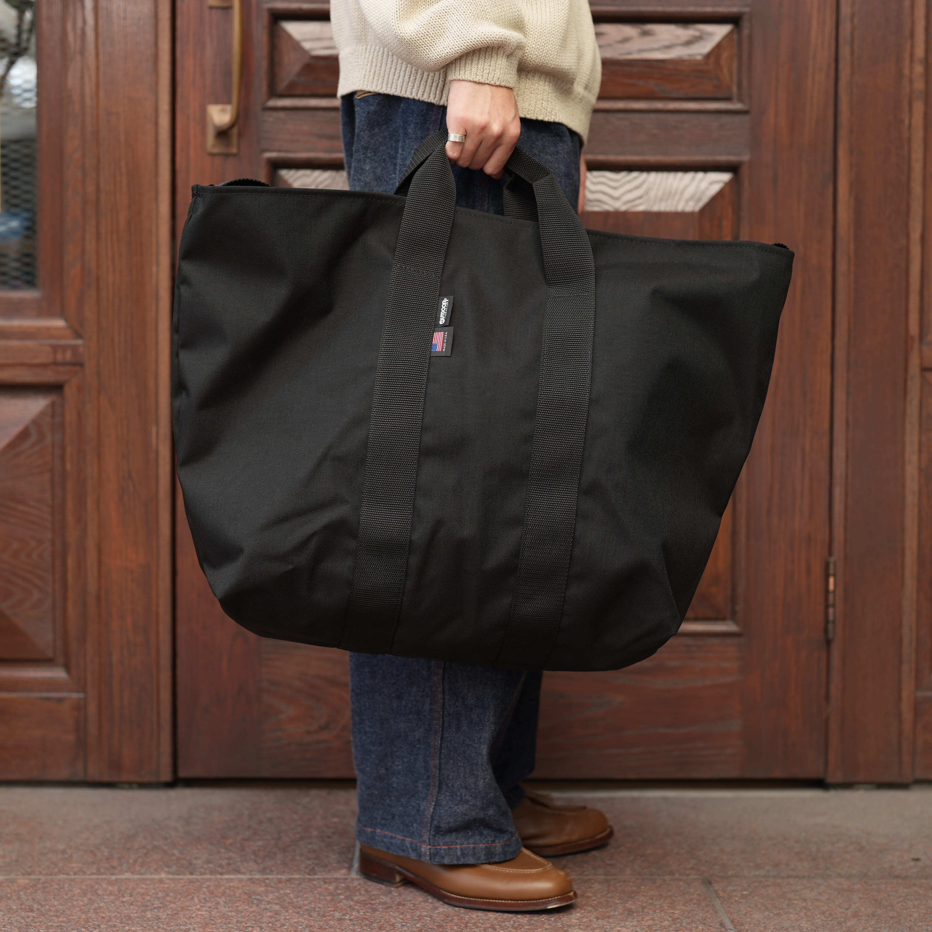 シンプルで壊れにくい構造こそがアウトドアプロダクツのレガシー。日常使いでの便利さを目指したトートバッグは、手持ちハンドルに加えて固定式ショルダーストラップを装備した2WAYスタイル。開口部は広く、余計なフラップや留め具もないので、荷物の出し入れがしやすい。内部もシンプルな一室構造で使いやすさを追求。丈夫なコーデュラナイロンを使用し、長く愛用できる耐久性を実現しています。