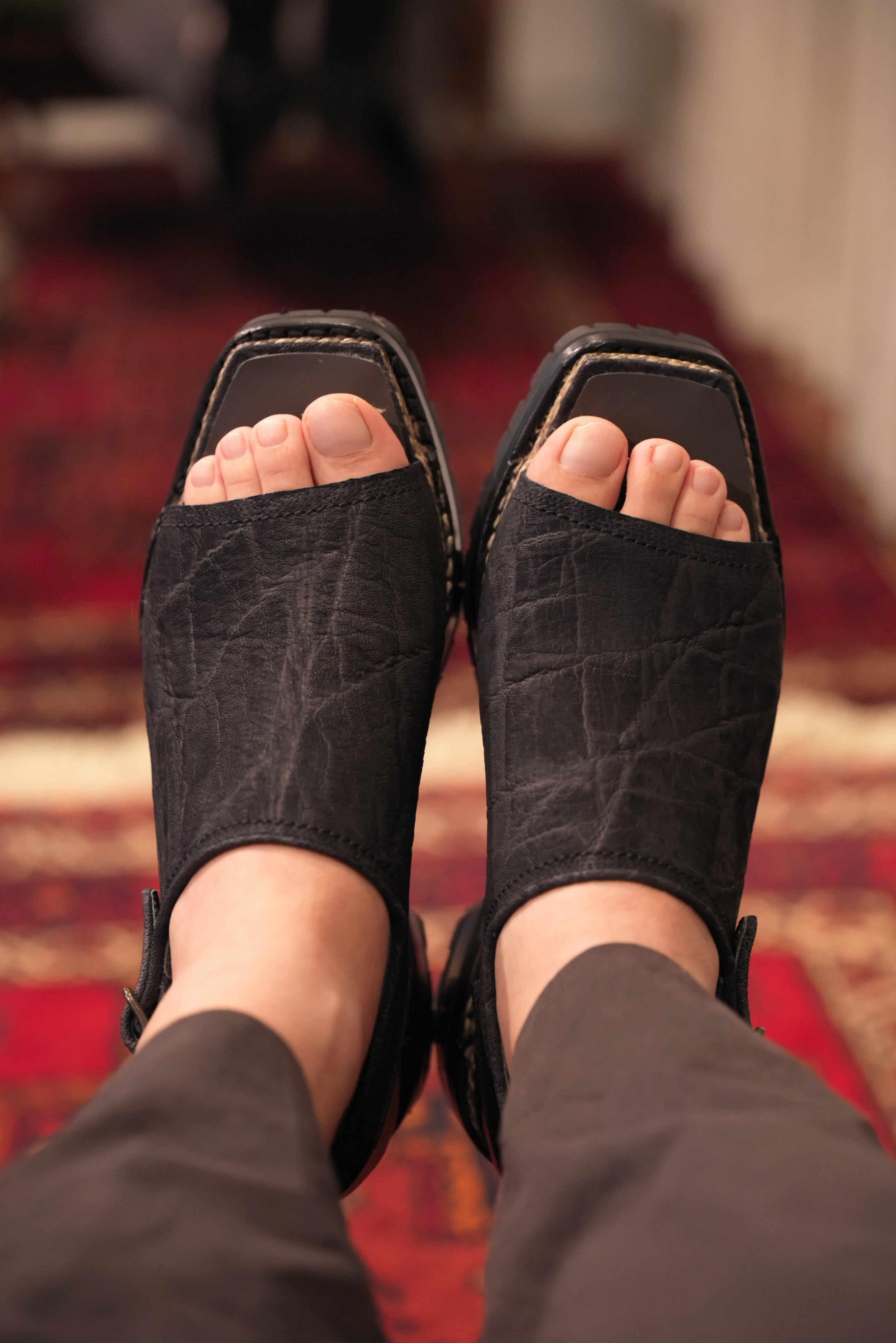 去年の夏、ボリュームのあるショーツとのバランスを取るためにスリングバックやサボを素足でサンダルのようにして夏に履いていました。やはりバランスは最高に良かったです、我慢すればいけるんですが、やはり熱がこもるので足が蒸れます、、、、特につま先部分。