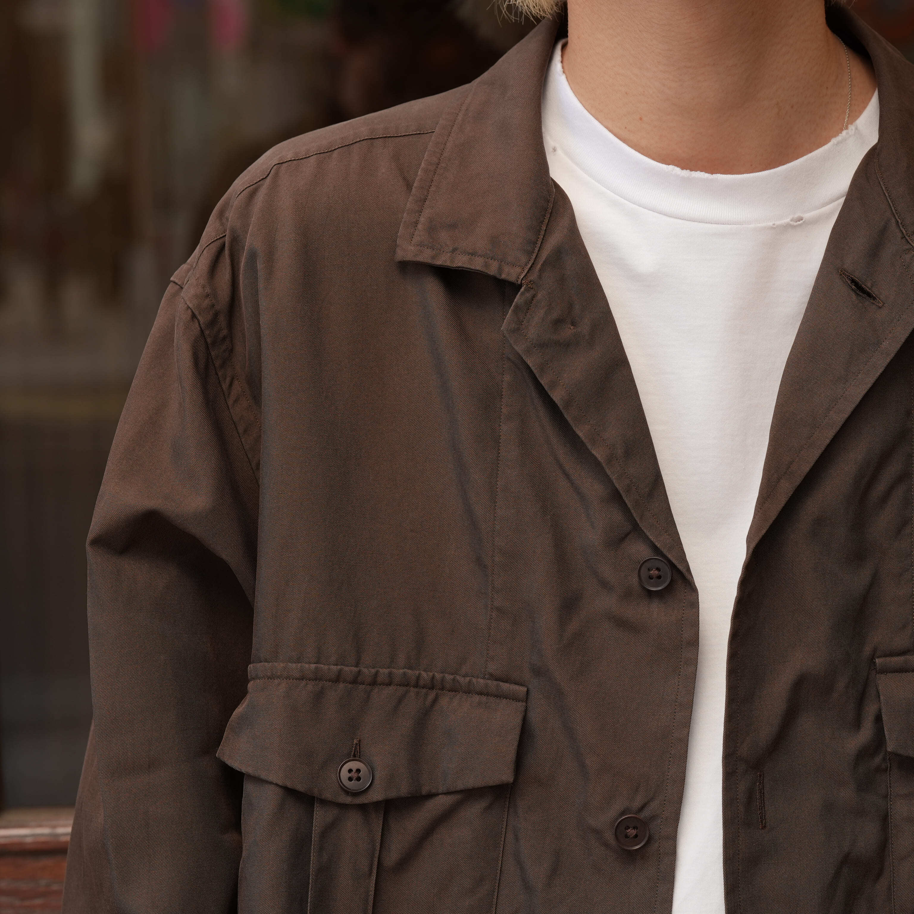 フロントには2つのポケットと機能的で無駄のないデザイン。ベーシックで使い勝手の良さがありながら、そこに凄まじいクオリティの生地を落とし込む。羽織るだけで洒落た雰囲気があり、ありきたりなシャツとはしっかり差別化してくれる。