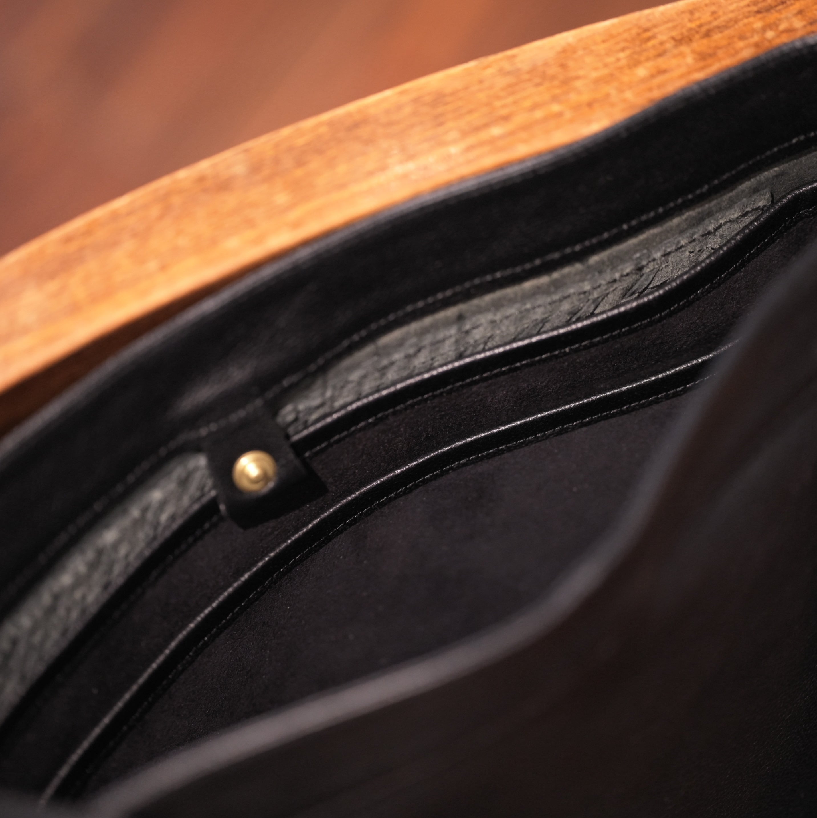 トートはどうしても重さをダイレクトに感じやすいモデルなので、内ポケットの素材には今回ウルトラスエードを初採用。