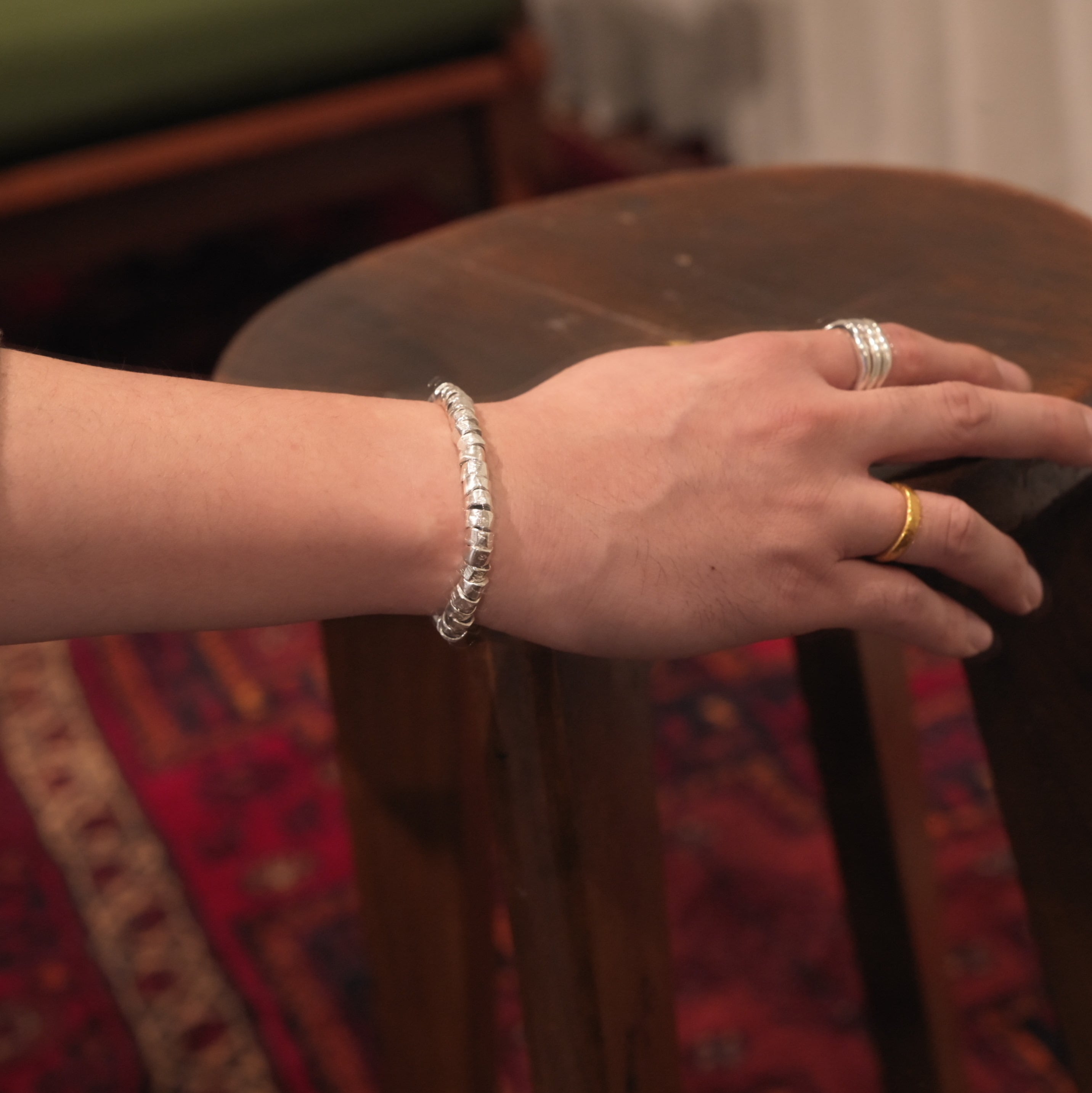 単体での存在感も充分にあるのでこれ1個で完結するも良し、シルバーが少ないモデルとの重ね付けも良し。冬場に付けていても邪魔にならないので1年中付けっ放しでも良いぐらいのモデルです。