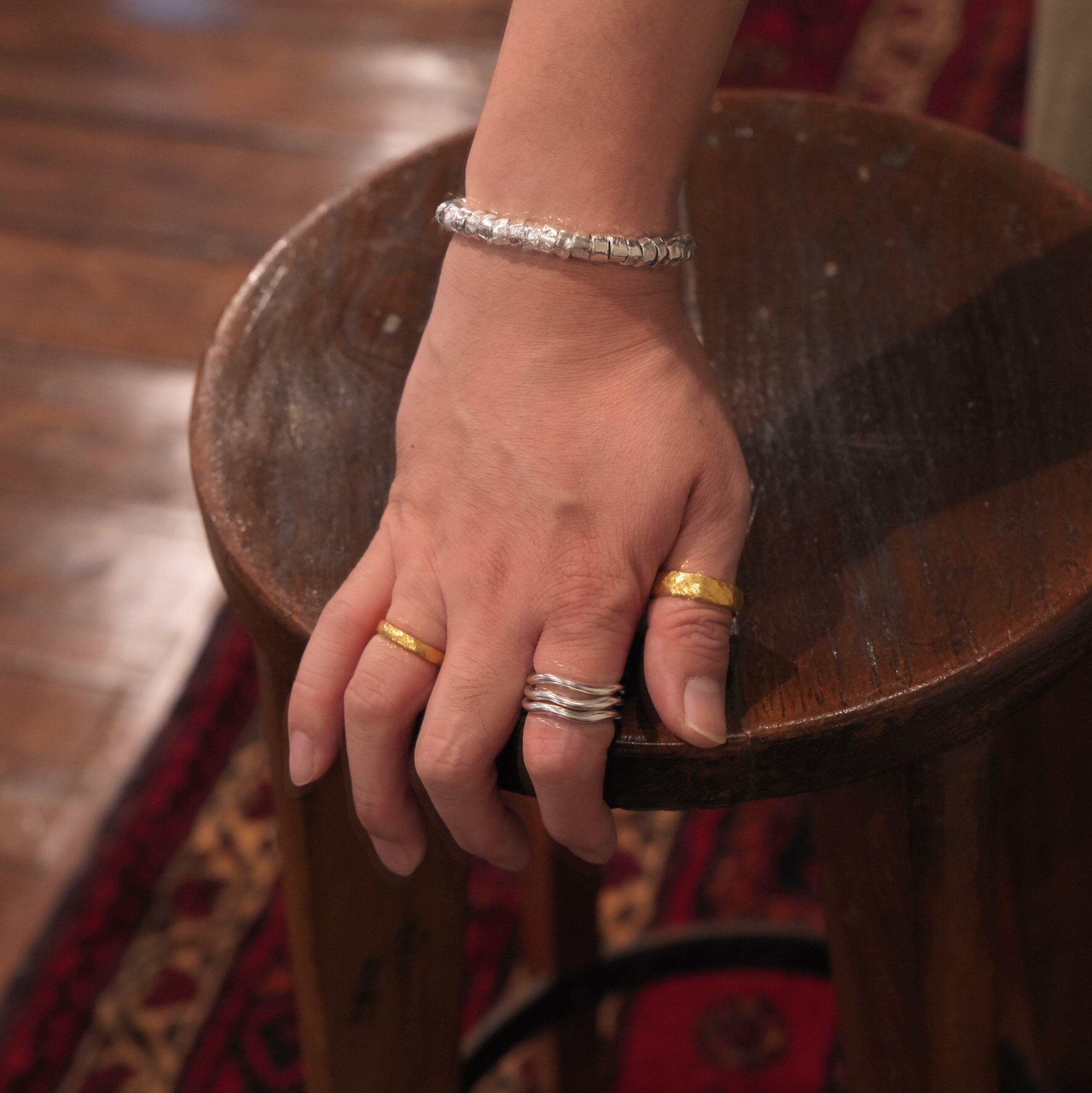 シルバーとゴールドを使い表現されるデザインは、シンプルでオーガニックなフォルムながらモダンさを併せ持っています。