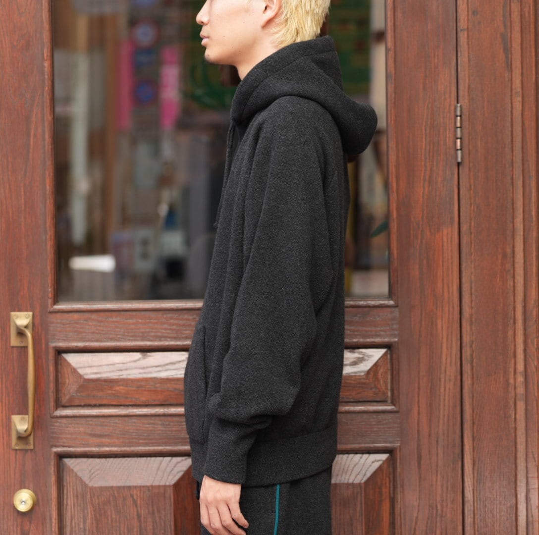 SUPER160sのウールを使用したニットパーカーですが、昨季とは異なり裏毛仕様に変更しております。カシミヤとはまた一味違うモチモチとした着心地で想像の3倍は着心地と保温性が高いです。