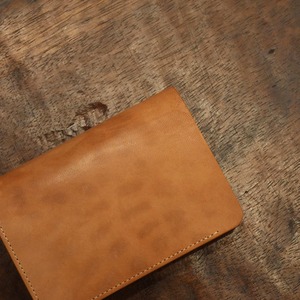 繊維が緻密でしっかりとしたホースのバット部分をピット槽に漬け、45日という時間をかけて植物のタンニンを浸透させた、とても上質なヌメ革です。コードバン同様に小傷などがあり、更にステインもそのままに仕上げられた革。ブラックに染めれば粗は目立たなくなりますが、せっかくなのでこのナチュラルな表情のまま製品に仕上げてあります。色濃くツヤが増していく革らしさを楽しんでいただけたらと思います。