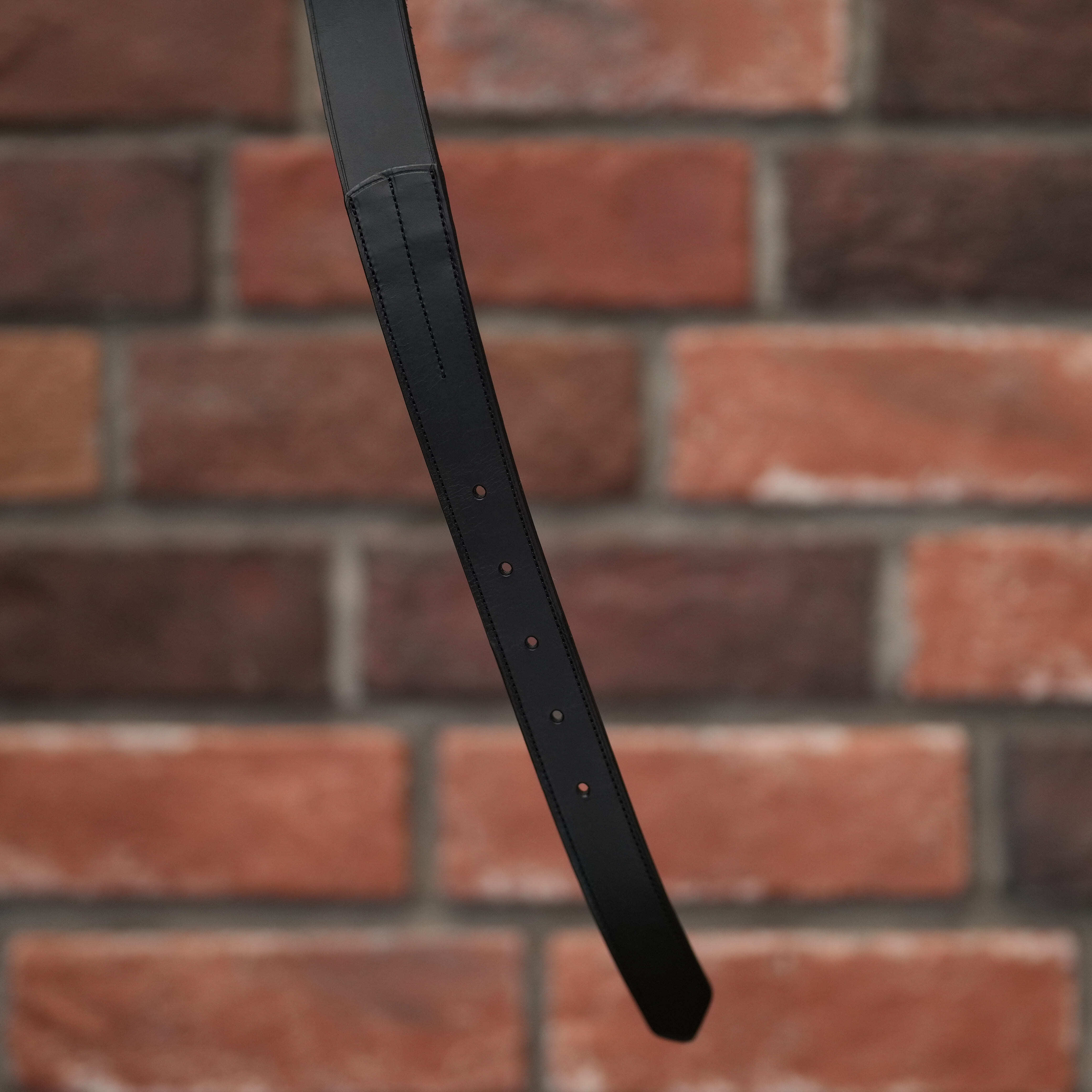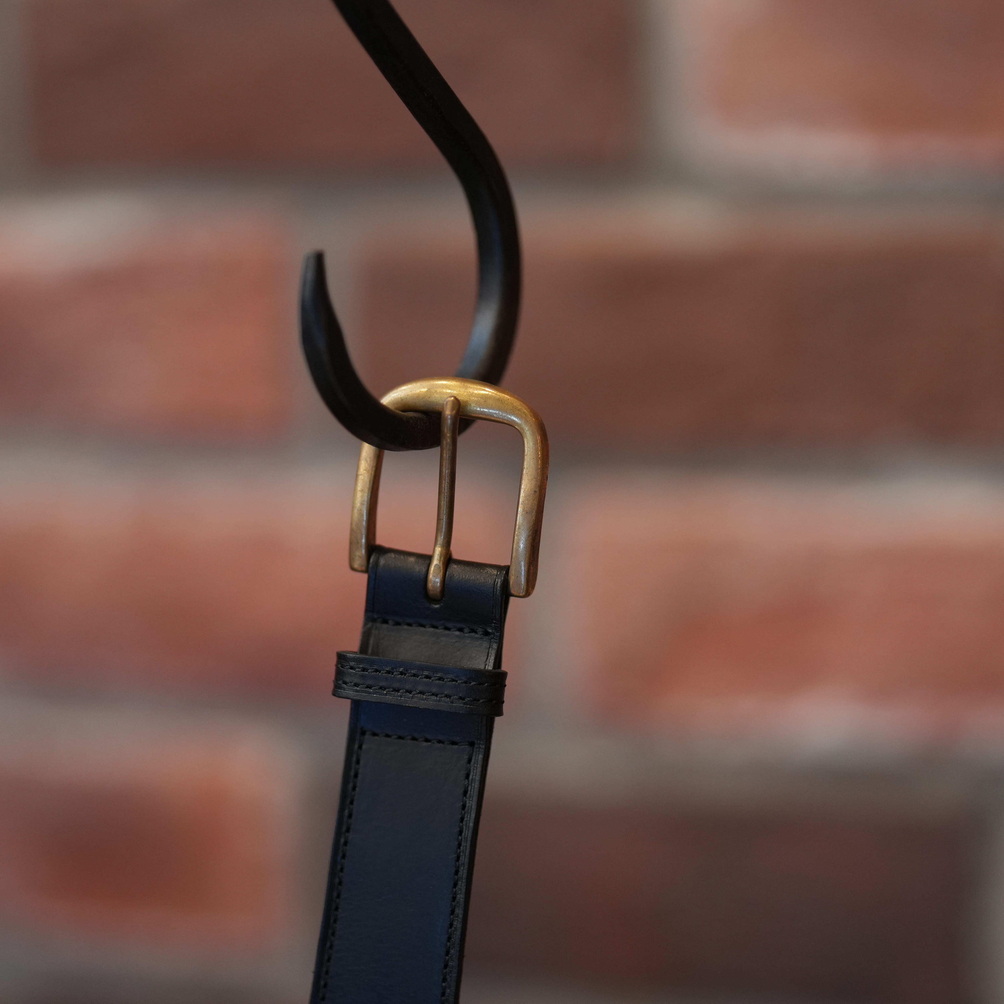 作りの丁寧さに加えて、身体に沿うように湾曲して作られたシルエットが目を惹く、付け始めから自然に馴染んでくれる1本です。両端にかけてテーパードした特徴的なデザインによって付けた時の安心感はありながら、正面から見た時は洗練された雰囲気があります。日々何気なく使うベルトだからこそ、こういった気の利いた作りは非常に嬉しいです。こちらはブッテーロレザーを使用しており、使い込んでいくうちにいい味が出て、自分だけの1本になっていきます。